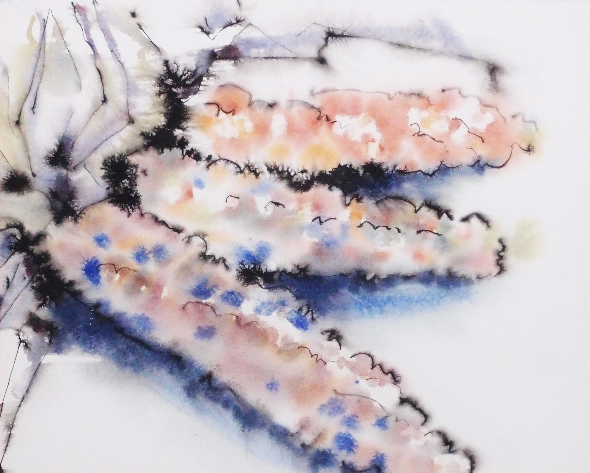 Alma Costan's luscious watercolors focus on fruits and vegetables. Her delicate technique captures the color and texture of her subjects and the simplicity of her compositions make her works appealing and evocative.