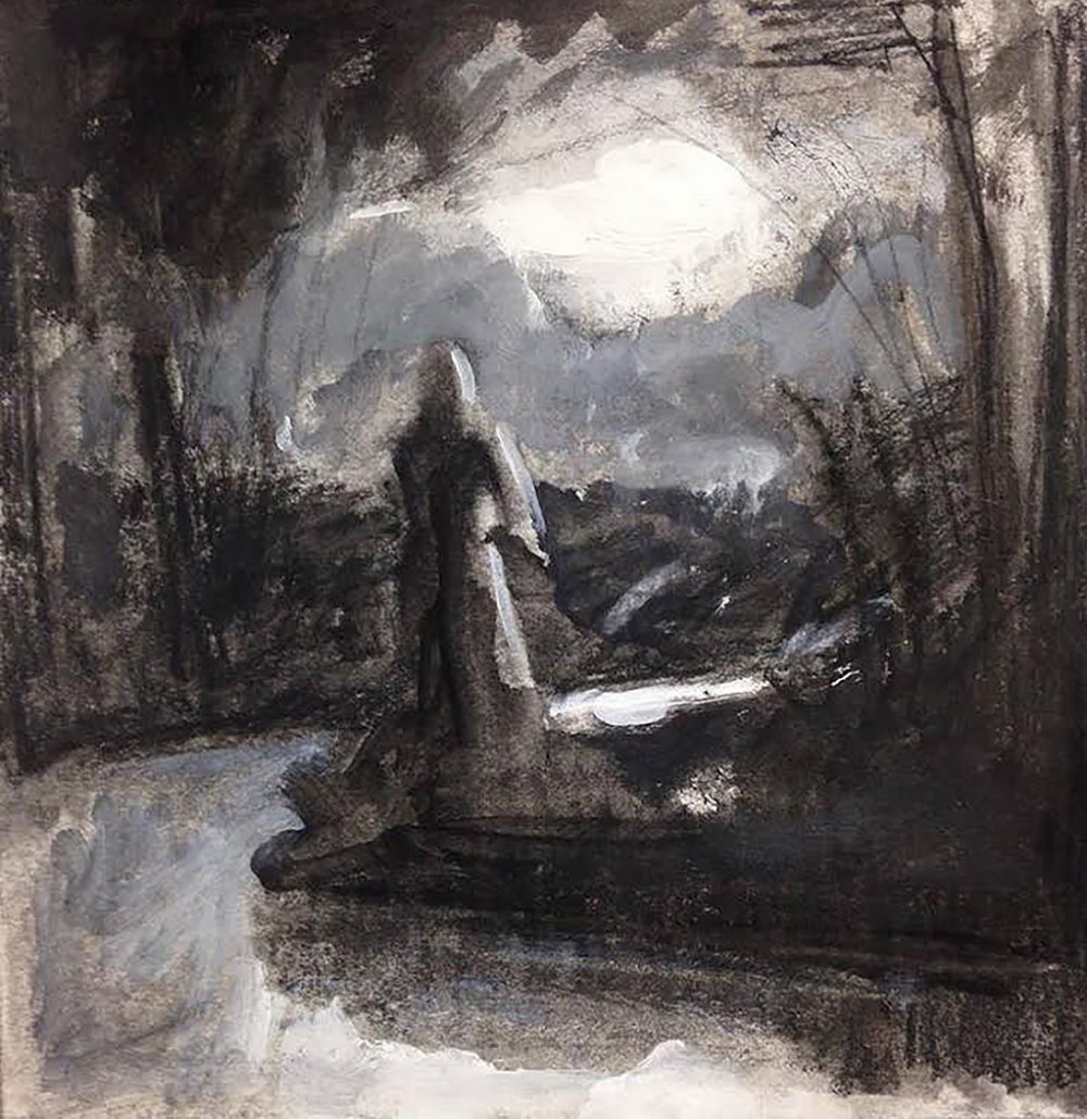 - Medium: Charcoal, gesso and ink