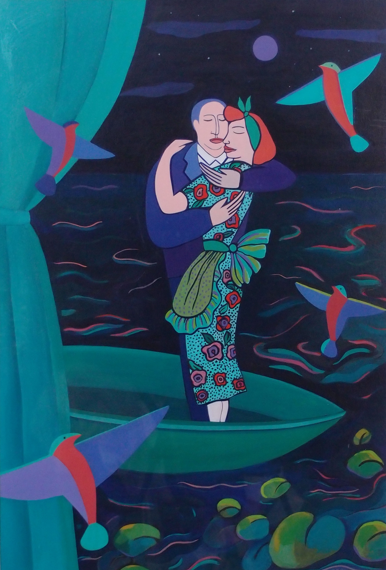 Sharon Bronzan is fascinated by icon painting and the Mexican religious art known as ex-votos. The influence of this work is evident in her flattened forms, clear colors and intensely evocative imagery, frequently focusing on the female form. Bronzan studied at the University of Oregon and taught art at Portland Community College for more than 25 years.
