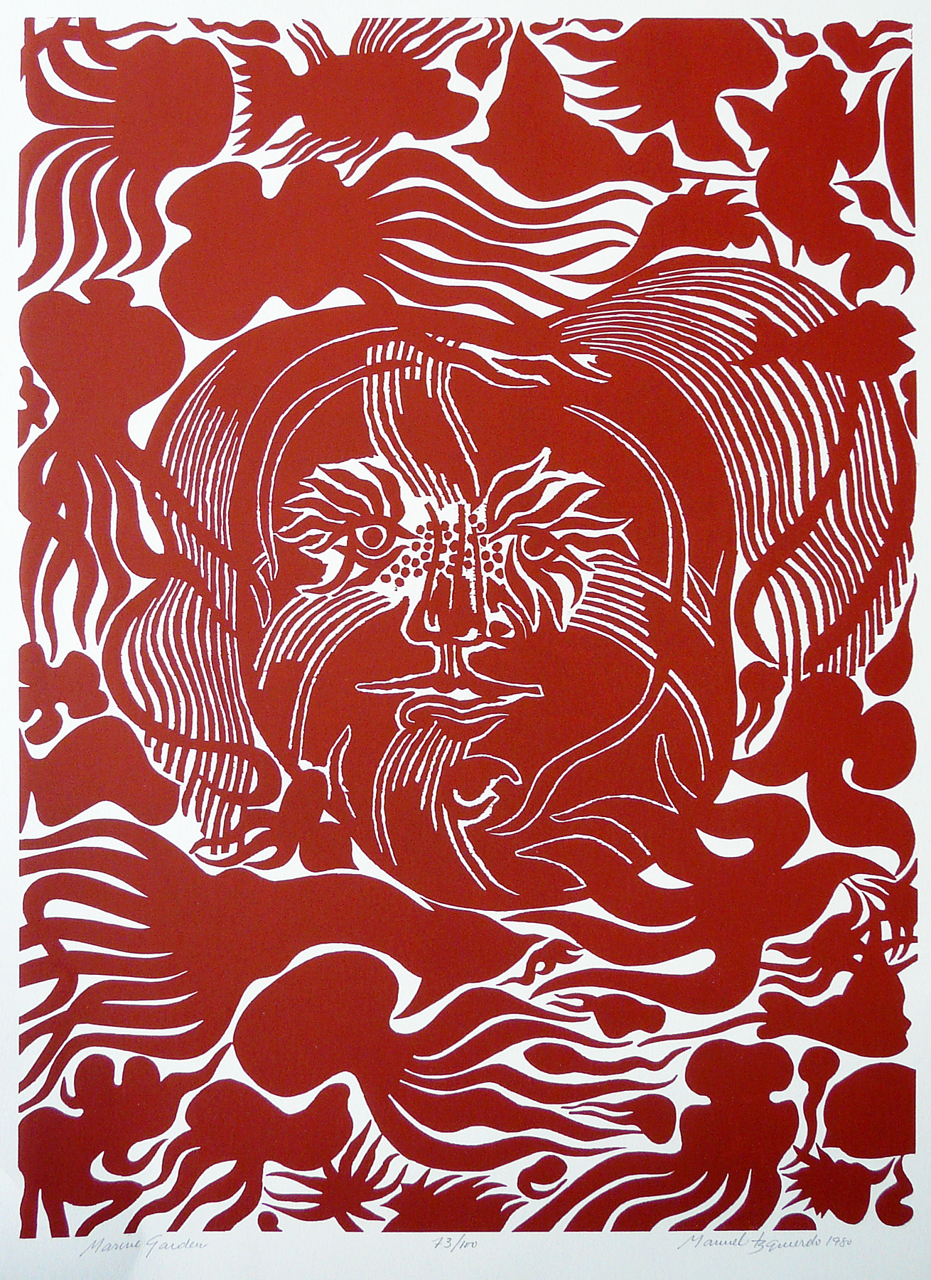 Manuel Izquierdo's exuberant and colorful prints celebrate the spectacle of life—circuses, rodeos, beautiful women, and lush flowers—as well as a deeper world of myths, folklore and legends. While he was proficient with a number of printmaking techniques, Izquierdo was drawn to the immediacy of the woodblock. Izquierdo, who died in 2009, arrived in Portland as a young refugee of the Spanish Civil War. He attended the Museum Art School (now the Pacific Northwest College of Art) and later taught there for many years.