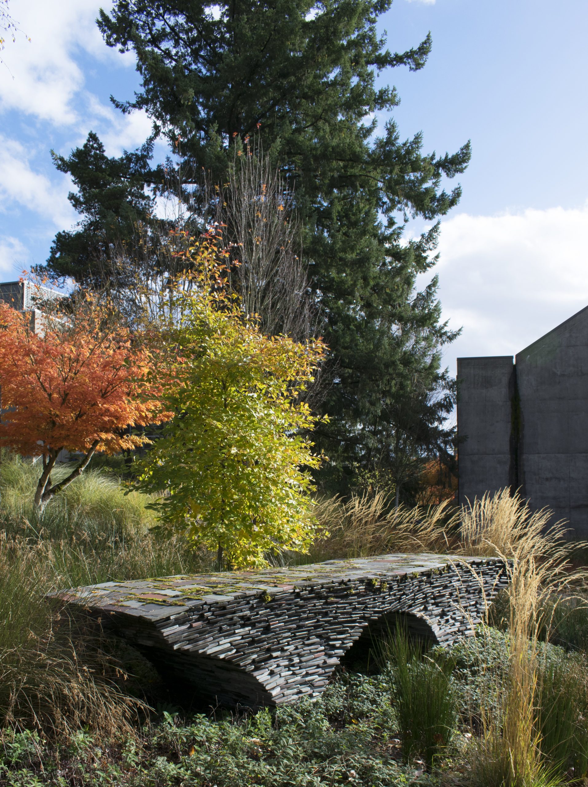: Outside, between east end of the library and CC building