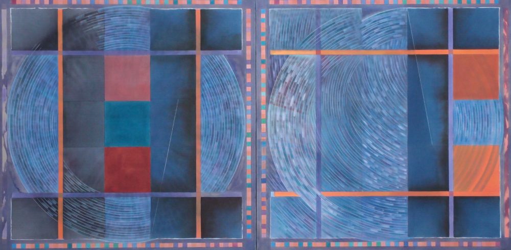With its washes of lyrical color and attention to delicate geometries, Silent Snow, Secret Snow exemplifies the somewhat architectural style for which Bill Hoppe is best known. Hoppe received his MFA from the University of Washington. He has exhibited widely in this country and his work can be found in major museum collections in the Pacific Northwest and in such public buildings as the State Capitol in Salem and the Oregon Convention Center in Portland.