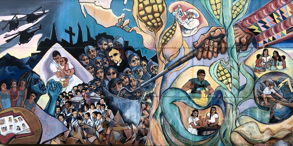 "Thank you for siting the "Struggle and Hope" mural at the PCC Rock Creek Campus. We, current PCASC staff and those who helped organize and paint this mural in 1988, are very enthusiastic – not only for the placement of the mural in its new home at Rock Creek – but for the educational community it will live among. Our hope is that aside from its artistic value, the mural will create stimulating conversations about past and recent history. With the growing Latino student body at Rock Creek, we hope the mural will be a constructive source of dialogue and inspiration about our country's relationship with Central America.