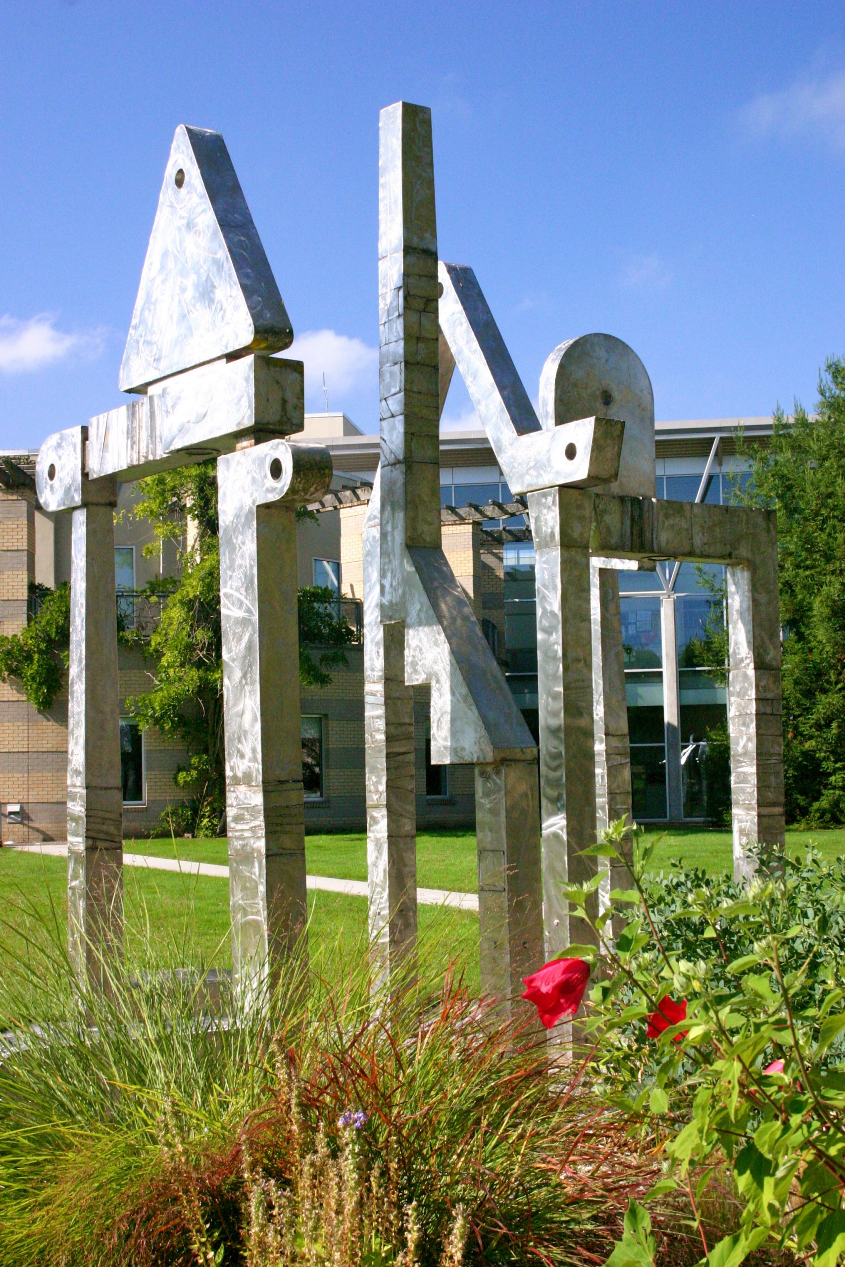 Lee Kelly's unmistakable sculptures can be found in many public collections in the Northwest. Stainless Dreaming exemplifies the artist's style and technique, in which he welds together pieces of stainless steel, working the surfaces to create pattern and gesture. His abstract forms address and often shape the spaces around them, as if they were doors or openings. Kelly, who was born in Idaho, attended the Museum Art School (now the Pacific Northwest Museum of Art.) He has traveled widely, particularly in India and Nepal, whose architecture, colors, and patterns have had a profound effect on his work.