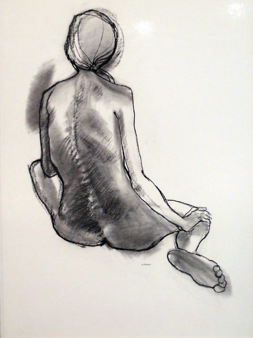 Harry Widman's lifelong interest in the human form could range from improvisational abstraction (see "Exotic History" and its related studies) to realistic drawings from the model. This uncharacteristically realistic work shows the artist's abilities to convey volume through the scrutiny of contour line and tone. Widman had a long and distinguished career as a teacher at the Portland Museum Art School where this study may have been done as a demonstration to his students.