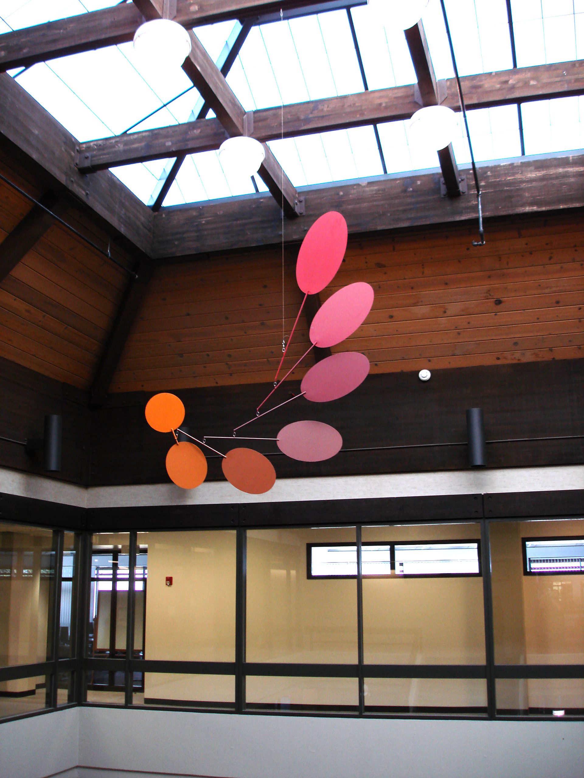 In this work, Freedman displays the influence of the renowned American artist Alexander Calder, who exhibited his first mobile-a term he used to describe his suspended, kinetic sculptures – in 1932. Like Calder, Freedman uses simple shapes and primary colors, and the piece derives its interest from its constantly shifting composition.
