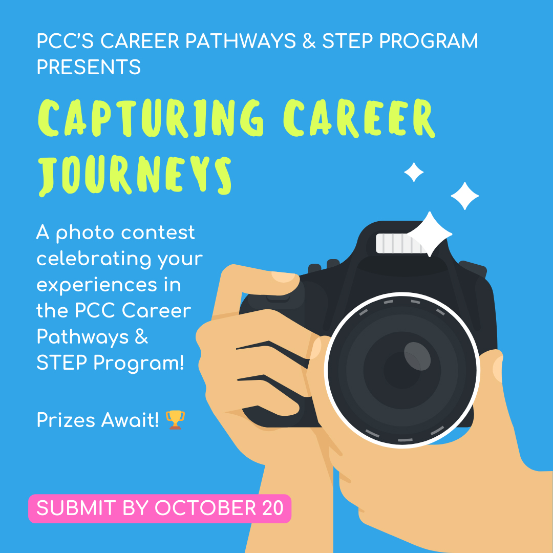 πΈβ¨ Welcome back, PCC students! π We’re excited to kick off the school year with a fantastic opportunity for you to shine. Introducing the “Capturing Career Journeys” photo contest, celebrating your experiences in the Career Pathways & STEP Program!