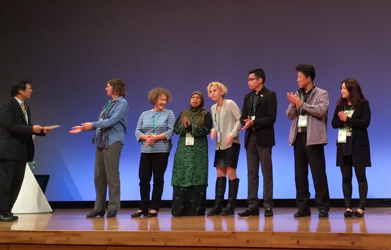 Greater Portland TeamWorks team being presented international civic engagement award by the United Nations University