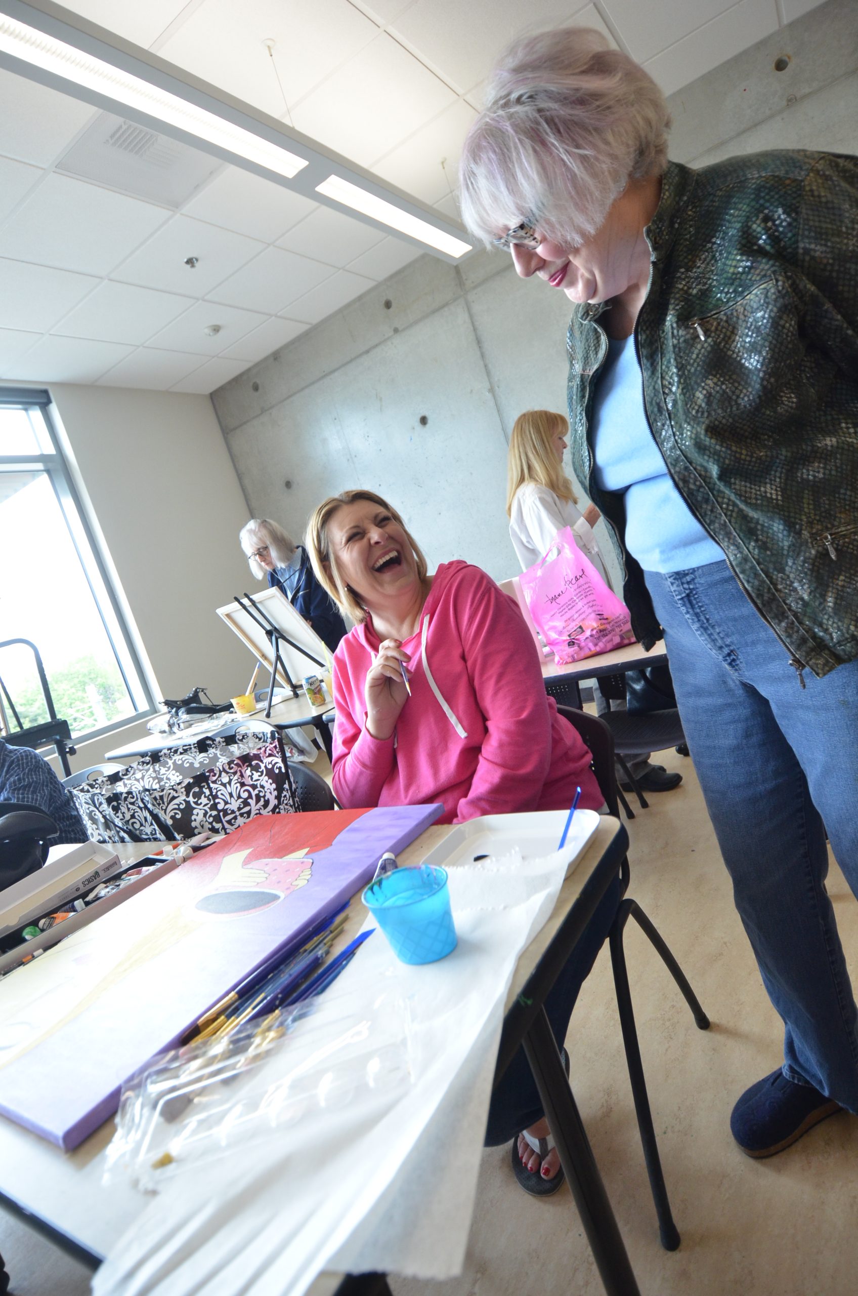 Melissa Thornburg Rocha with her Acrylics Artist Group class.