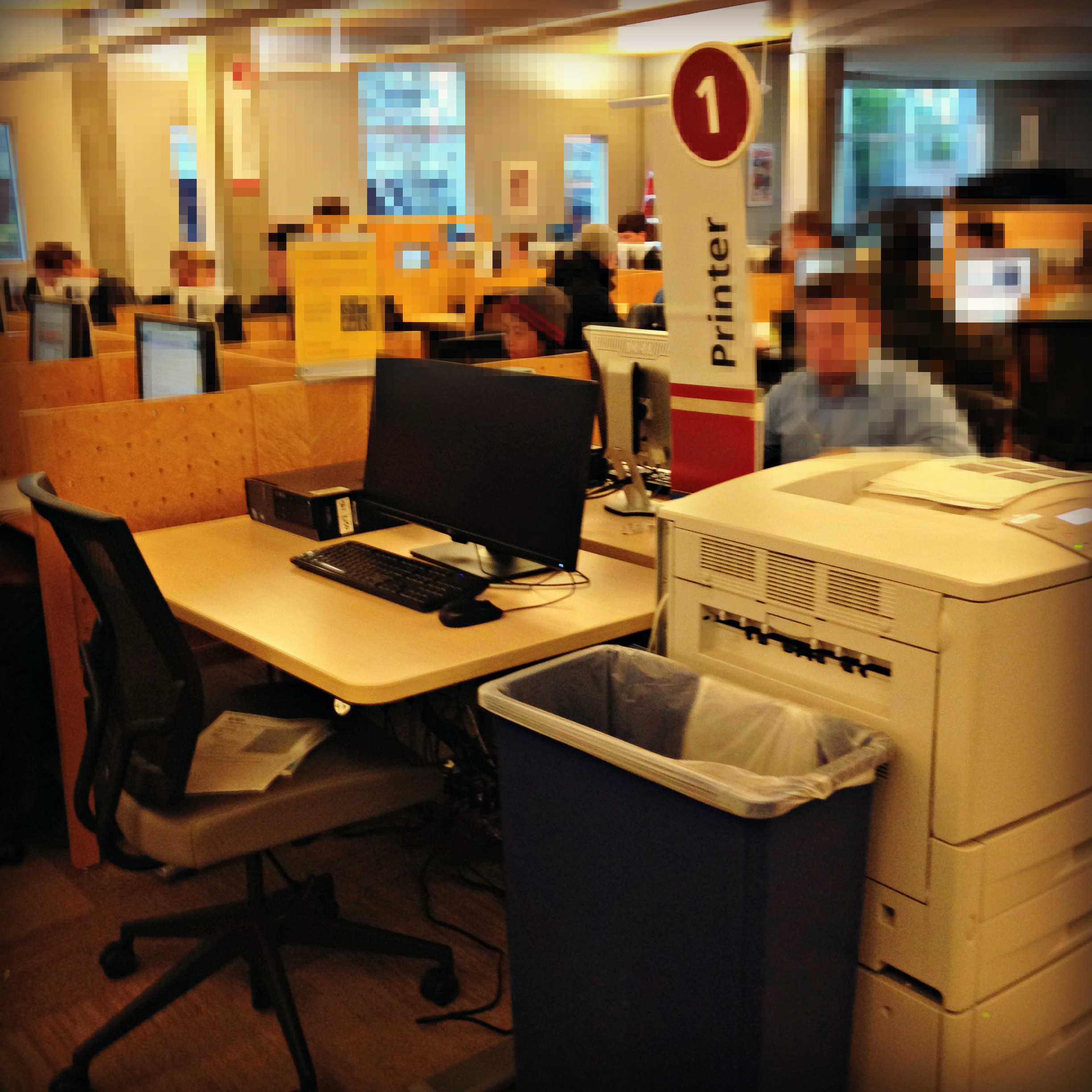The accessible computer station is adjacent to printer number 1 in the Sylvania Library Computer Lab. As you are facing the printer the station is in the left row of desks.