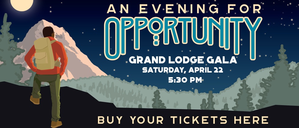 Buy your tickets here for the Evening for Opportunity Grand Lodge gala – illustration of a Black man hiking at Mt Hood