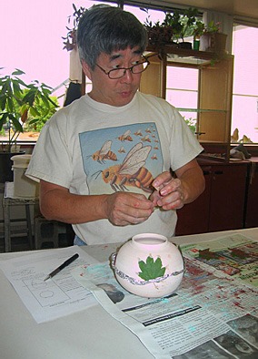 Materials such as seaweed, copper carbonate, paper, leaves, etc. can be applied directly to the clay surface to achieve a chemical transfer during the firing.