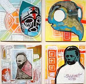 Michael Edward McGovern Top: Organic Jazz, Boogie Woogie; Bottom: Skater Unemployment, Butterface Charity, Mixed Media