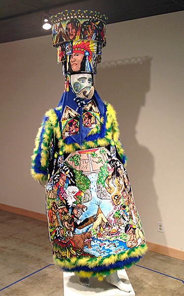 This media file is attached to: Chinelo dance regalia from Comparsa Orgullo Morelense Cemiac