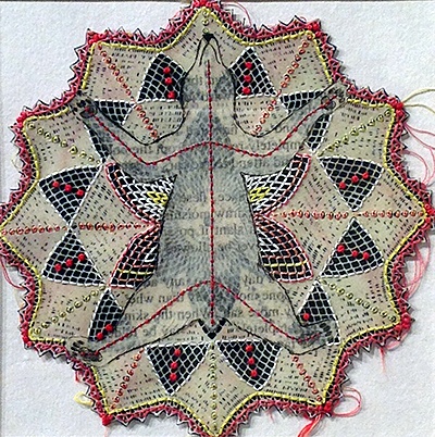 Rock Hushka Repair, Embroidered cotton mounted on velveteen