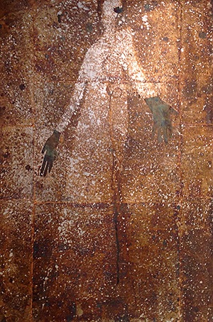 Fugitive, 2004, Oxidized silver leaf, Renaissance Wax on paper panel