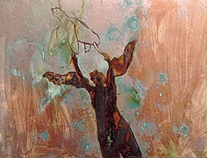 Shadow Dream, 2011, Oxidized silver leaf, Renaissance Wax on paper panel