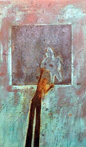 Fugitive, 2004, Oxidized silver leaf, Renaissance Wax on paper panel