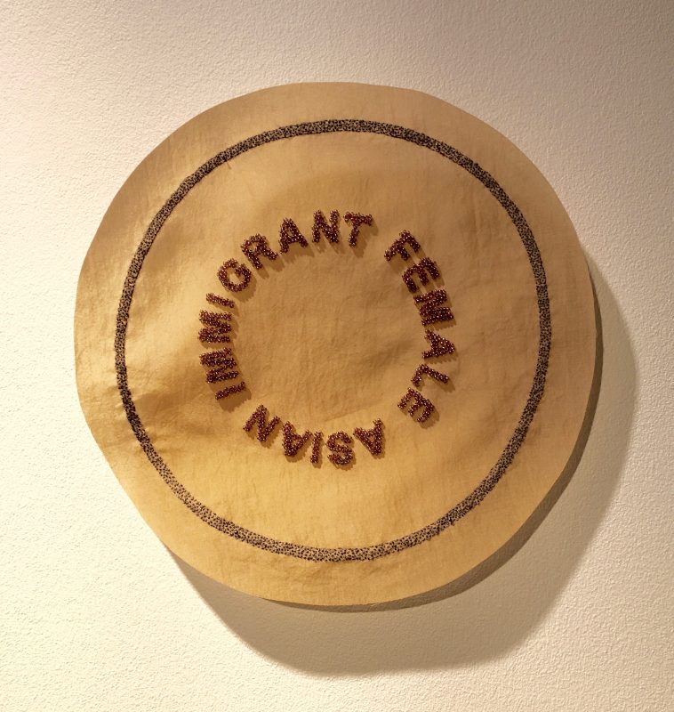 FEMALE ASIAN IMMIGRANT Fabric with hand embroidery and beads