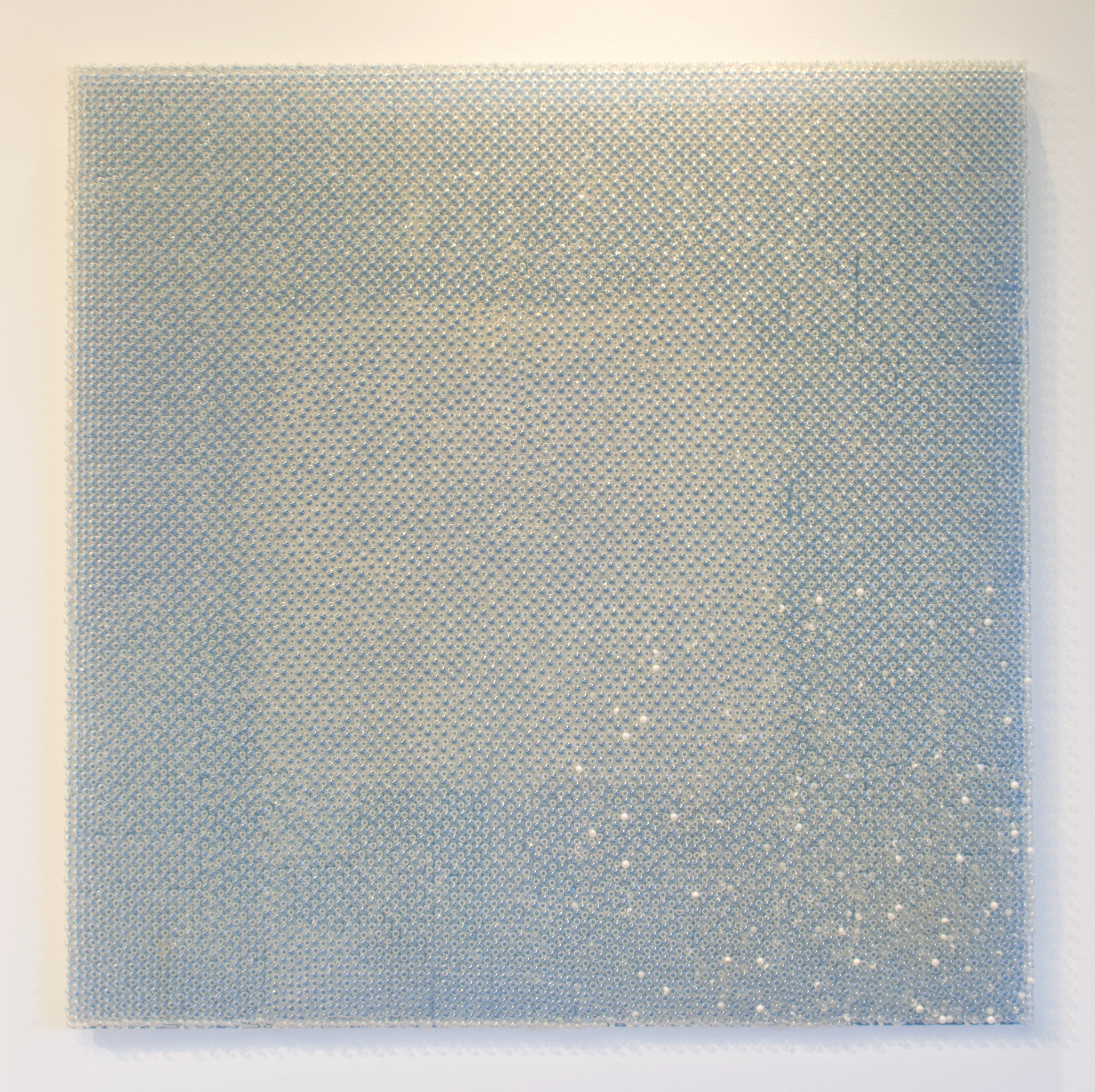 Jiseon Lee Isbara, Stare, 2018, fabric, thread, googly eyes, stitched and stained cotton