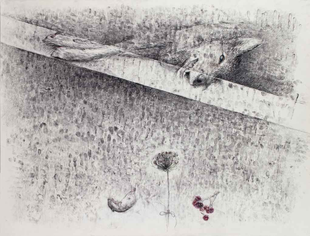 Song Dog, 2016, charcoal and pastel on paper, 38″ x 50″