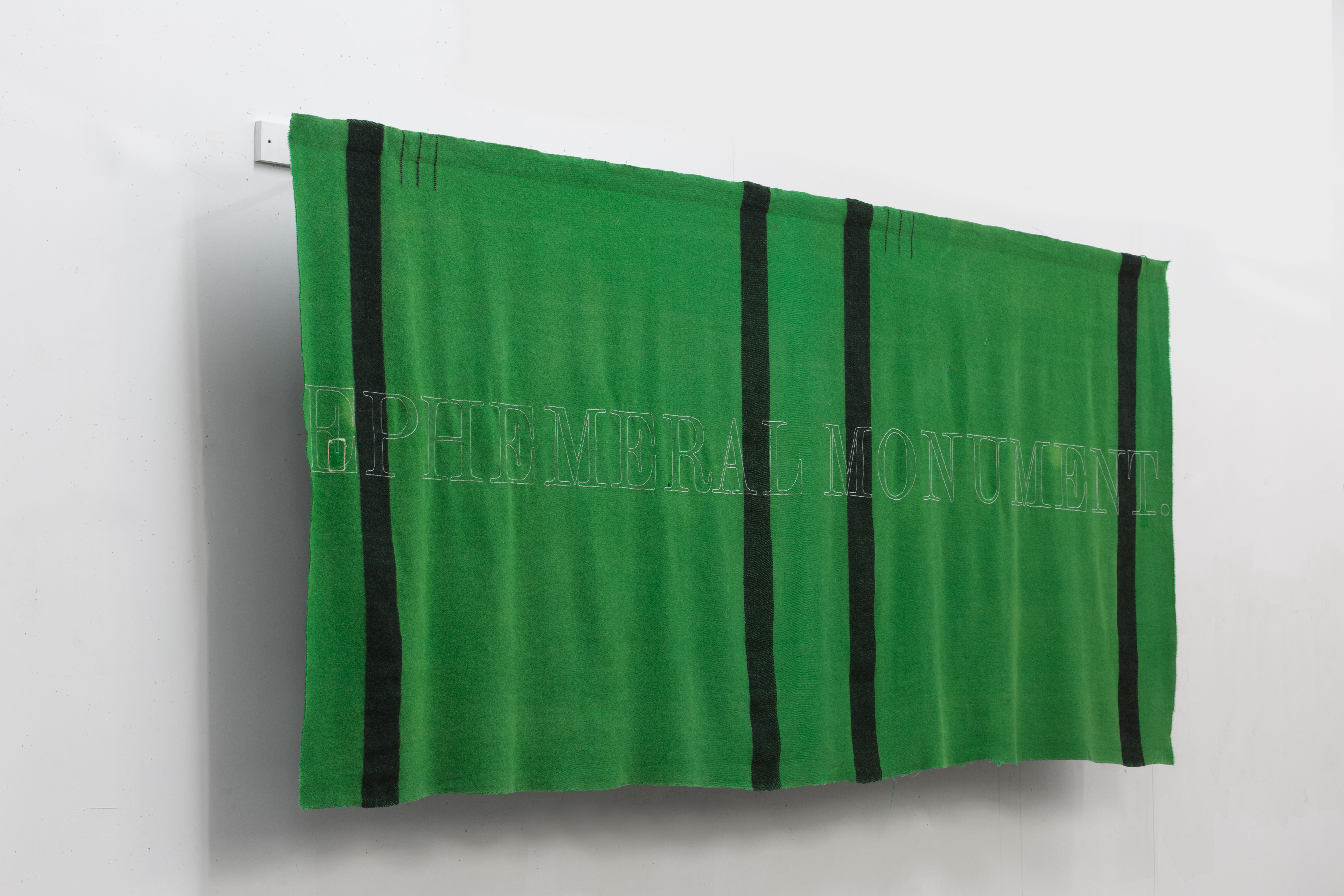 Placeholder reclaimed wool blanket, clear transparent glass Czech seed beads, thread 56.5 x 140.25 in 2017 Detail
