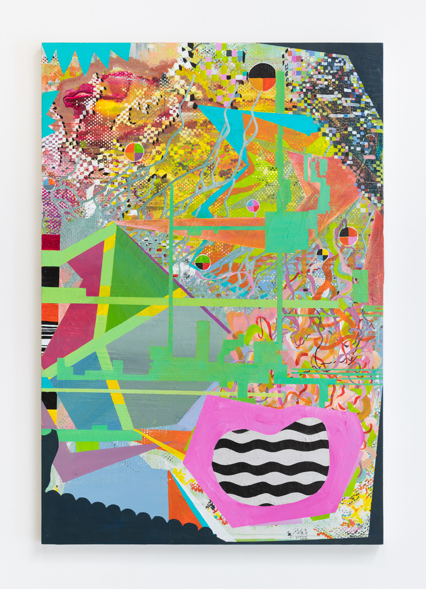 TRANSMISSION: BUSY SIGNALS, 2019, acrylic on panel, 44″ x 30″