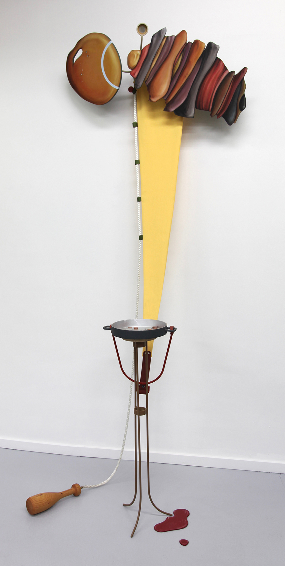Foresight, 2019, painted steel, wood, ribbon, leather, rice paper, 78.5″ x 6″x 14.5″