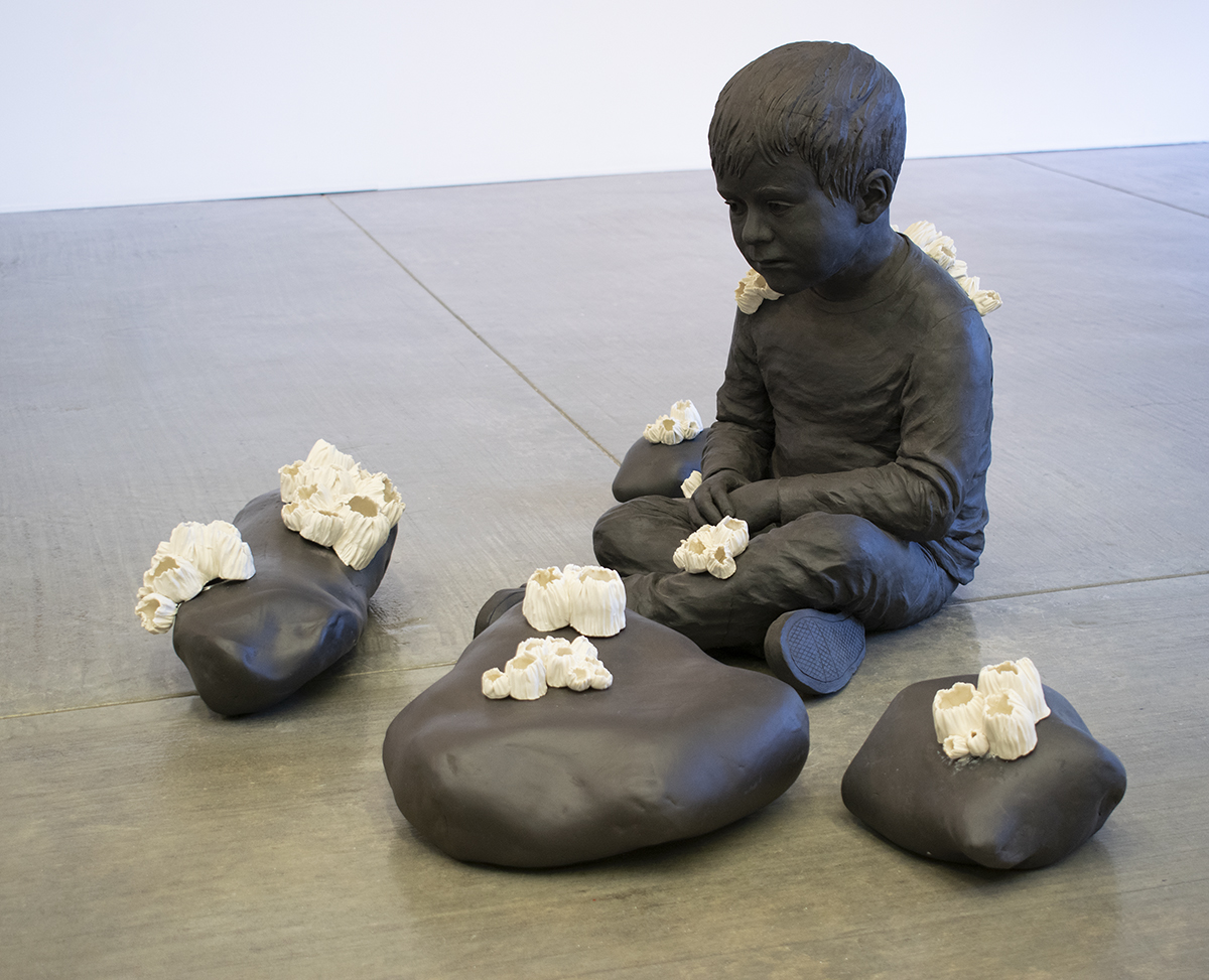 Crystal Schenk, I'm Not a Barnacle, I'm a Boy, 2017, stoneware, porcelain, 21" x 44" x 31"