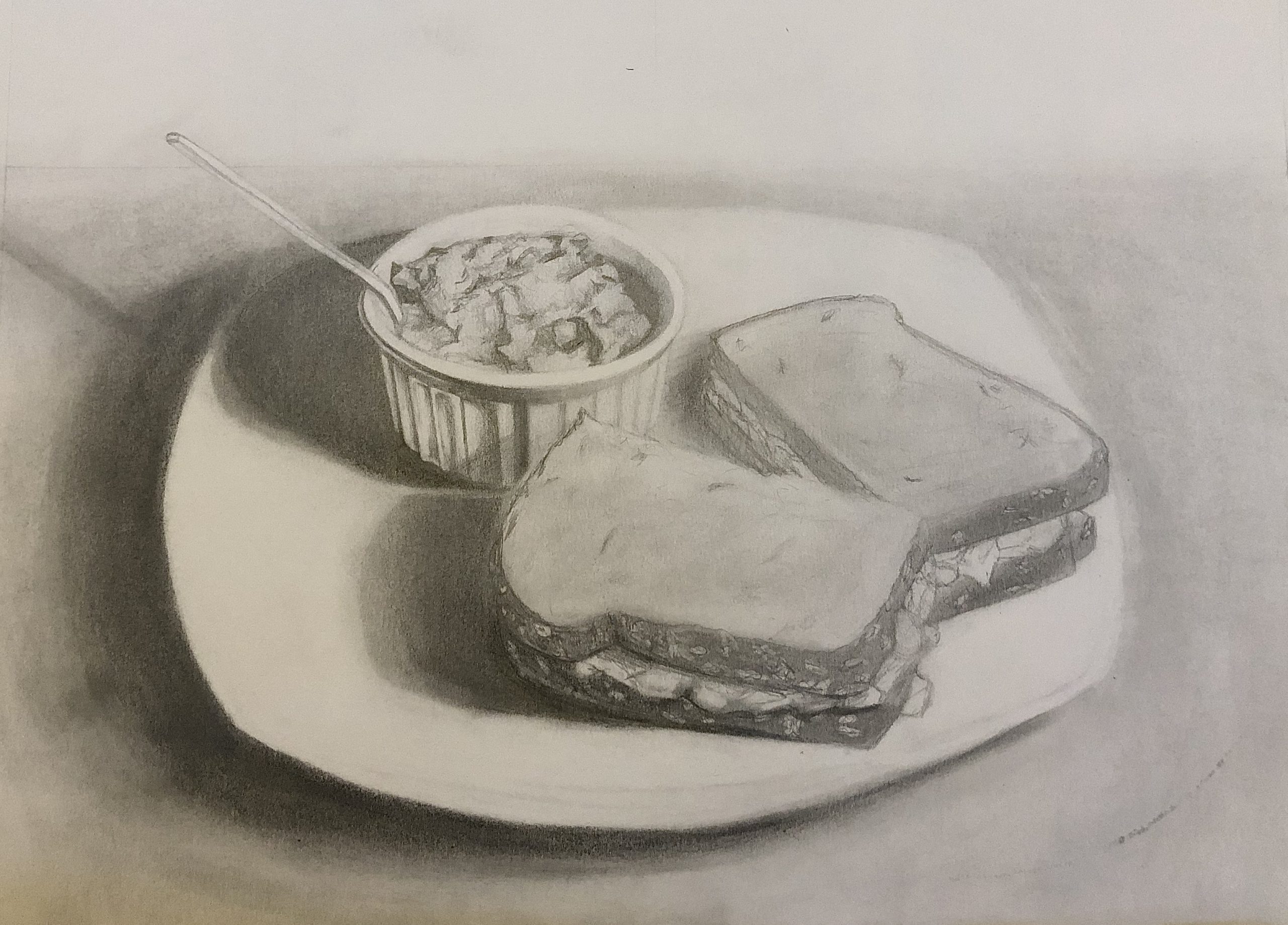 Ivory Bradshaw; Quarantine Dinner, 2020; Graphite on Paper; 9 x 12″; Drawing