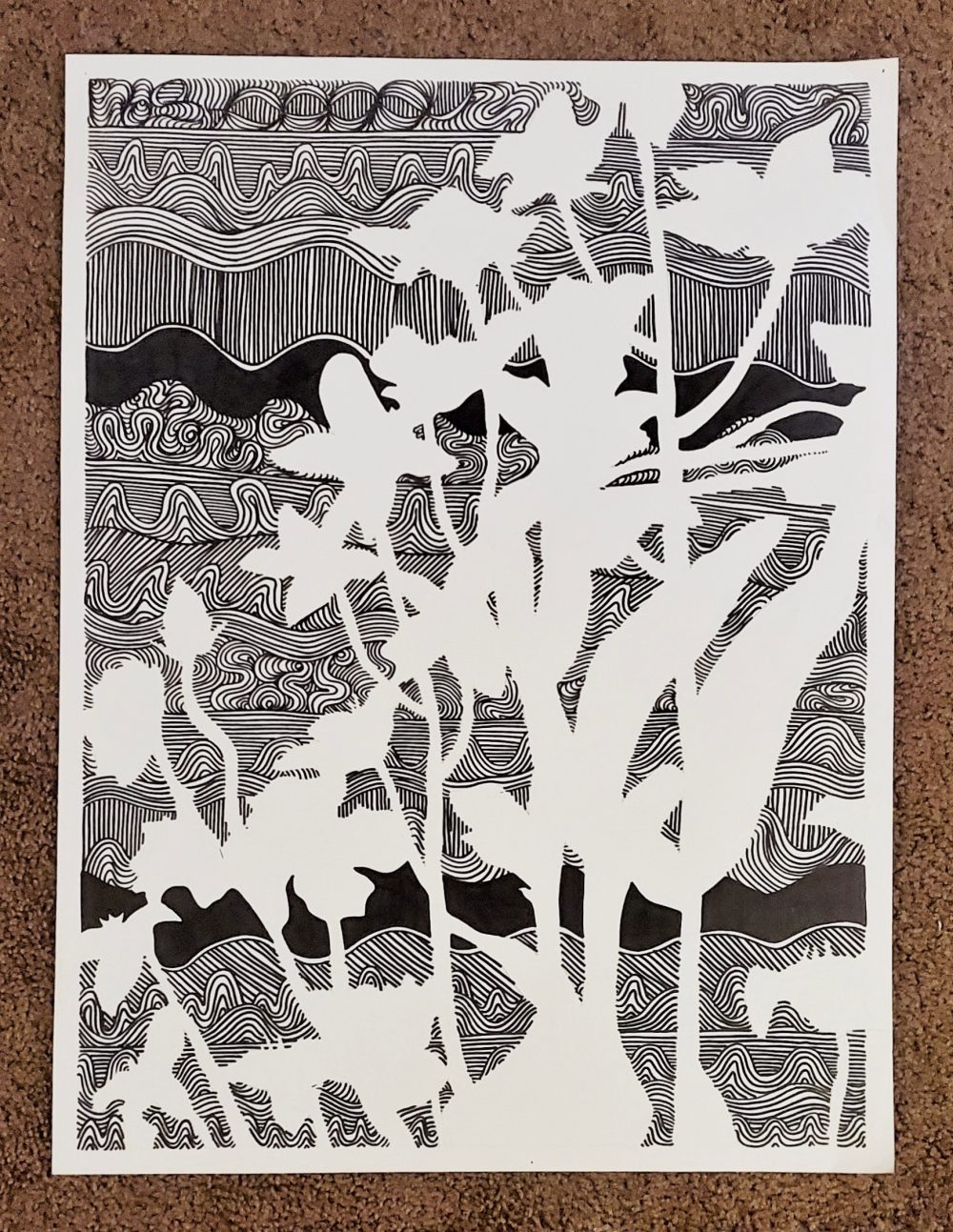 Sydney Erickson; Blank Blossoms, 2020; Ink on Paper; 24 x 18″; Drawing