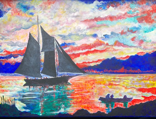 Eric Stone; Winslow’s Water, 2020; Acrylic on Recycled Canvas; 18 x 24″; Painting