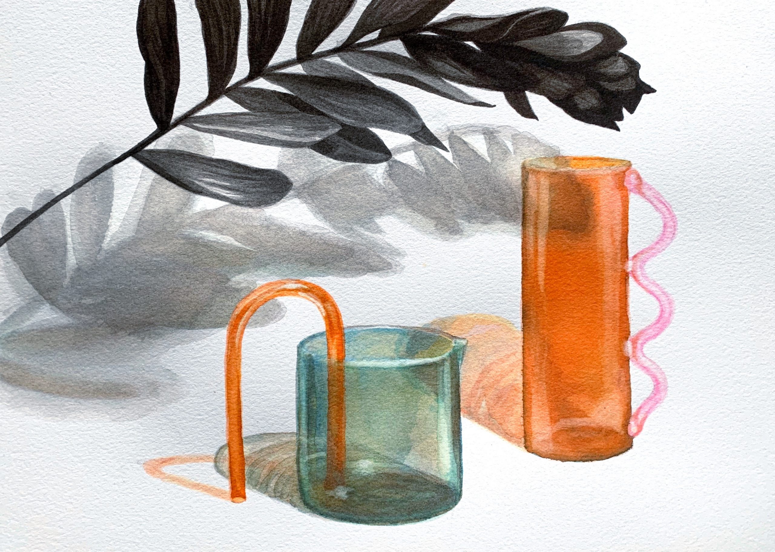 Megan Cooper; Odd Glass, 2020; Drawing Inks on Paper; 9 x 12″; Drawing