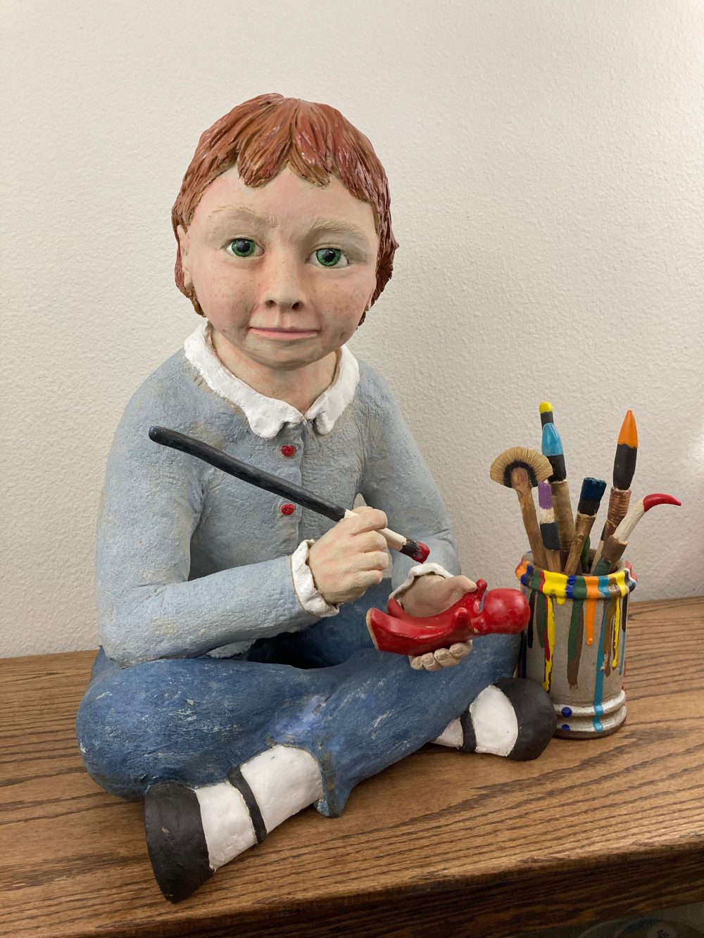 Sanda Smith; Young Artist, 2019; Oxidation fired Stoneware with Glazes, Acrylic Paint; 19.5 x 14 x 13″; Ceramics