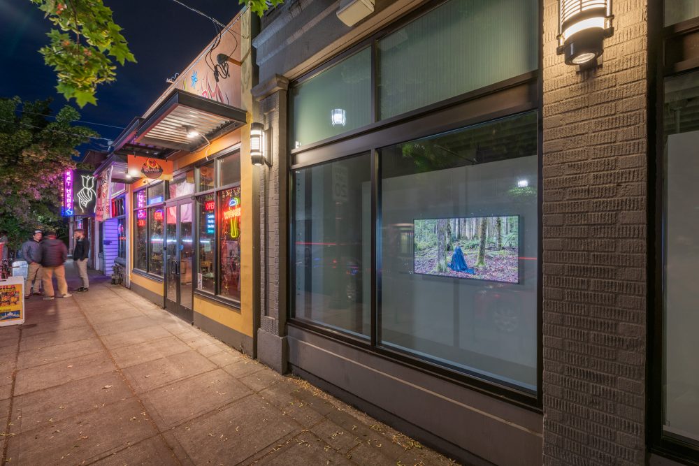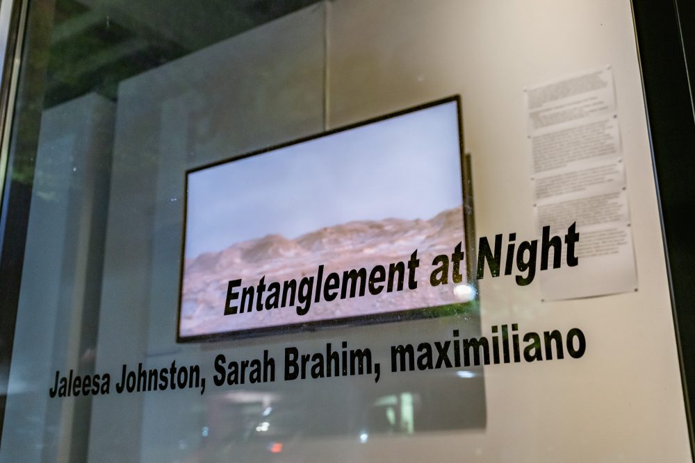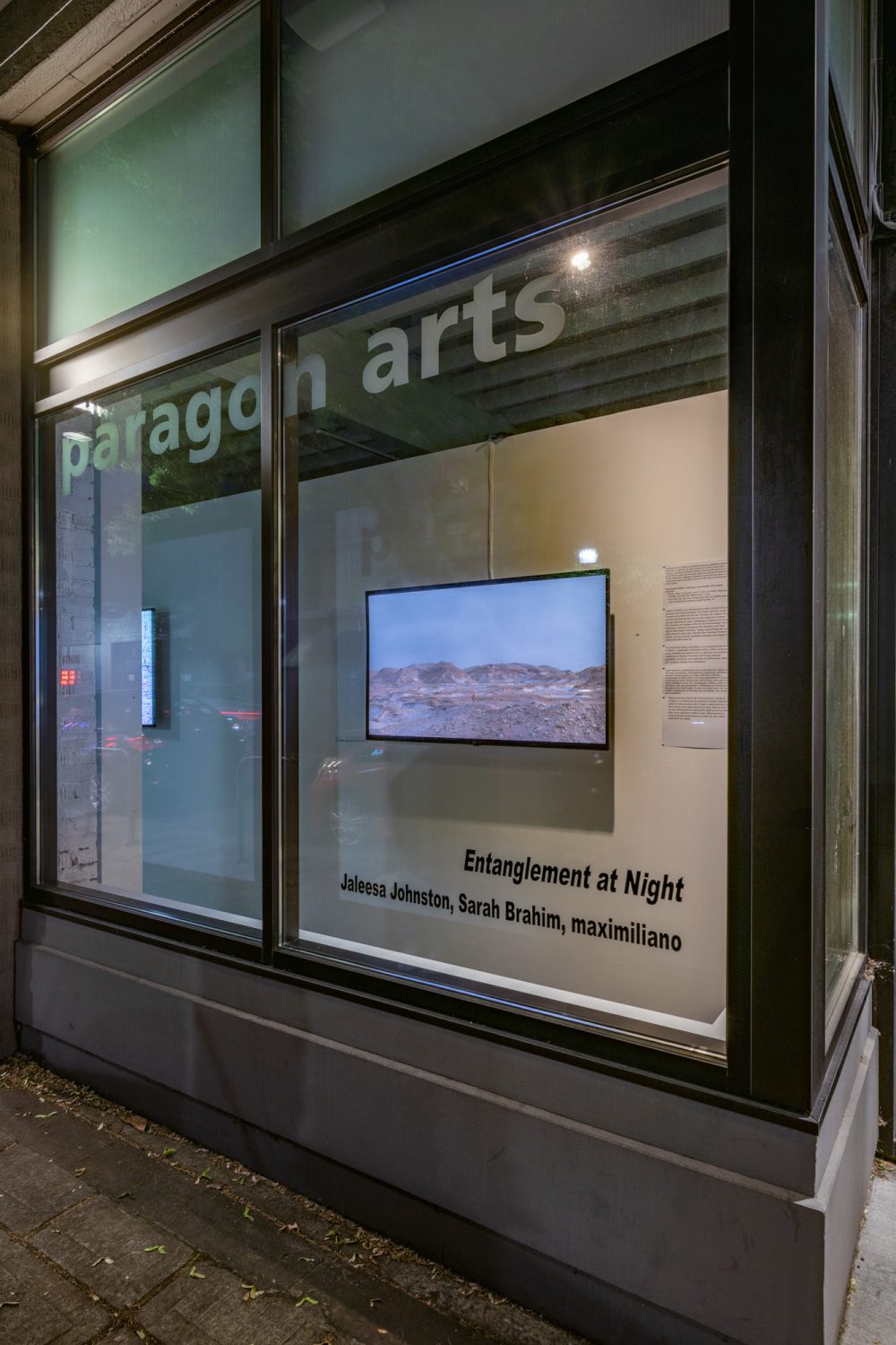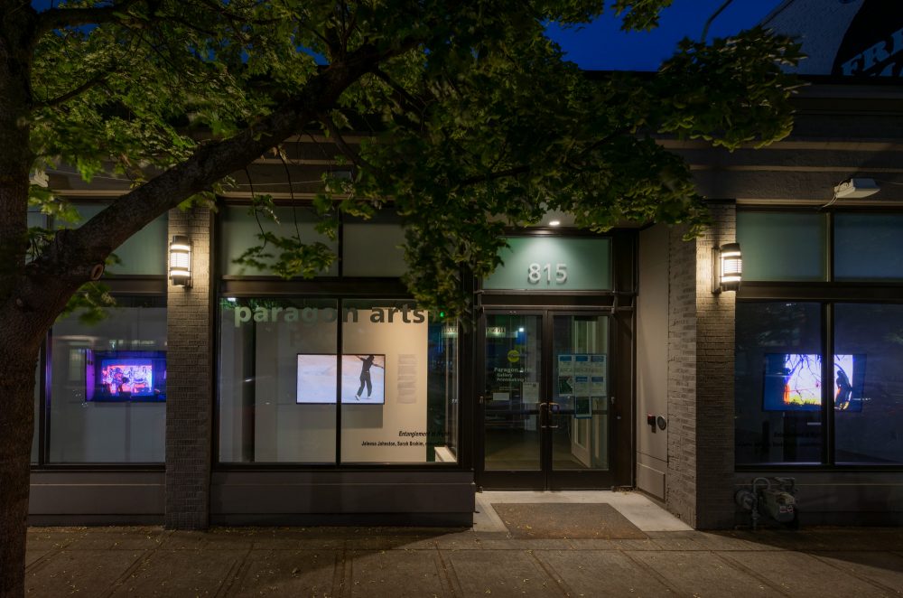 The Paragon Arts Gallery at Portland Community College, Cascade Campus is proud to present Entanglement at Night, a window exclusive nighttime exhibition featuring a collection of video works from artists maximiliano, Jaleesa Johnston and Sarah Brahim working with gestures of embodiment within and through digital and physical landscapes. These works form dialogues between performances within a nature of physical space, through a nature of the body and extension into video space.