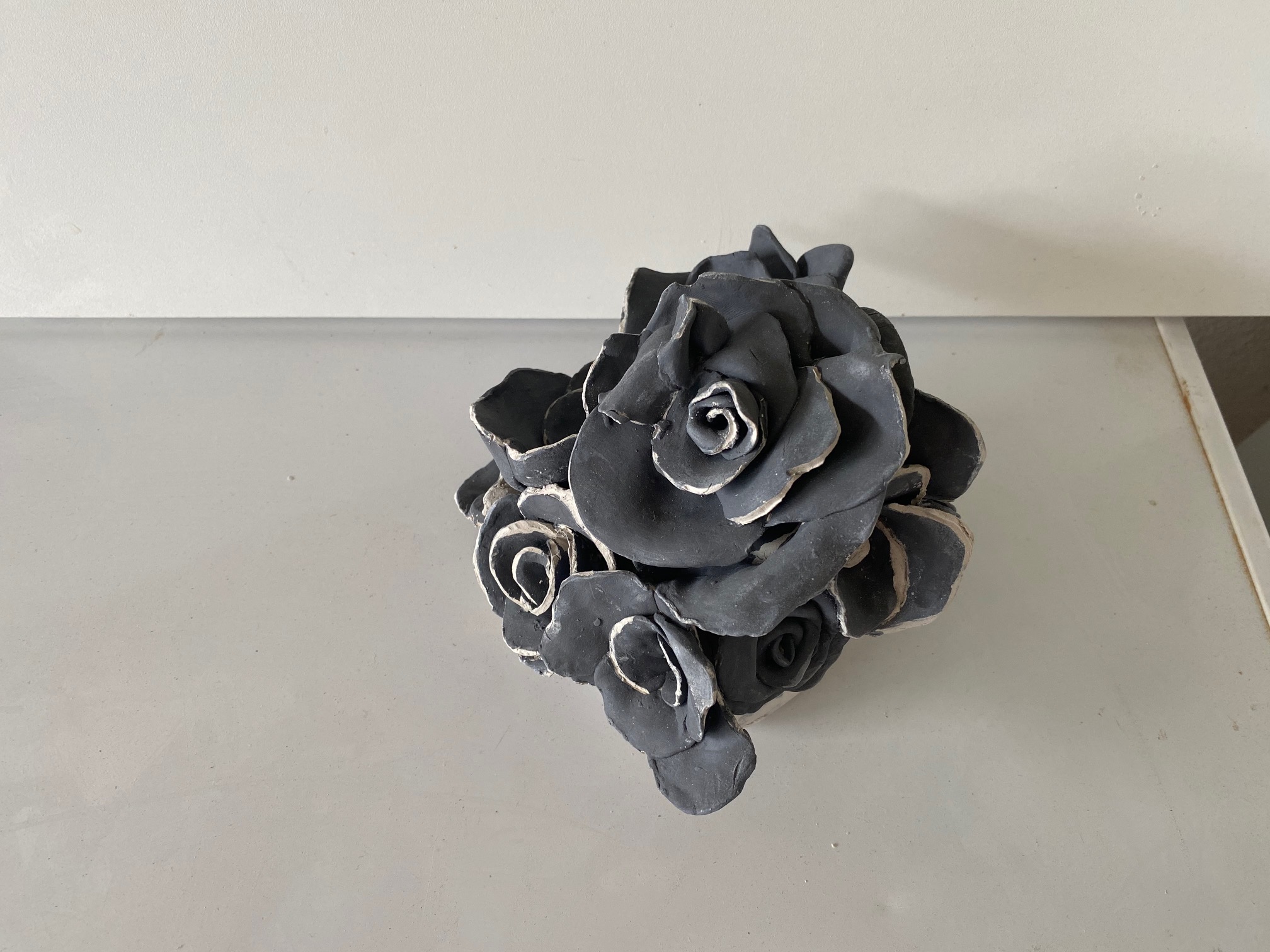 This is one sculpture I explored utilizing my palm in creating flowers. In fact, the design was for a pinch pot, that I paddled into a pyramid, flipped it upside down and scored/slipped my flower garden on.
