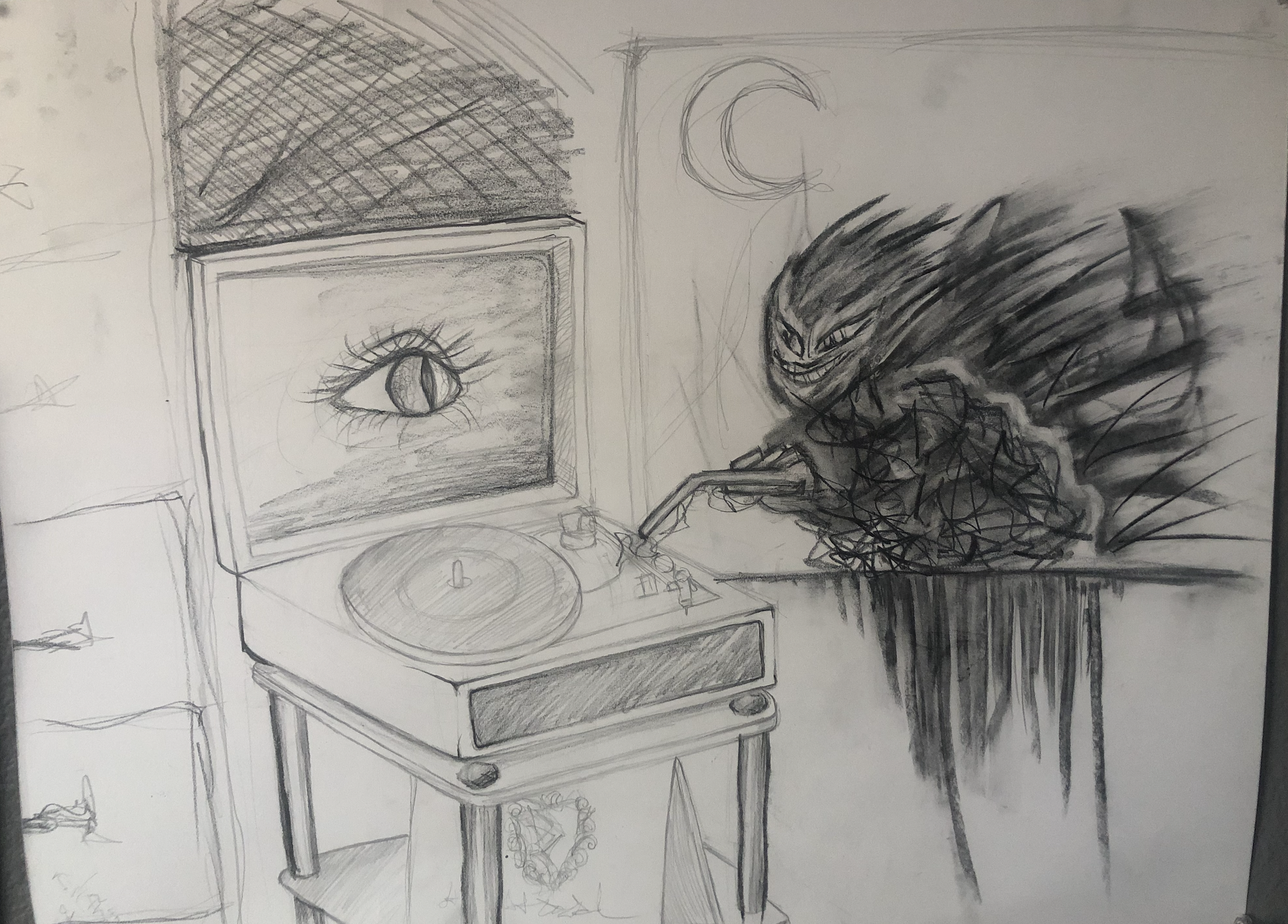 I had to lose shapes for this art project but I went too far and just let my hands do what they wanted. In the end I had to redo the project but I still love this work, and how it meshes reality with abstract.