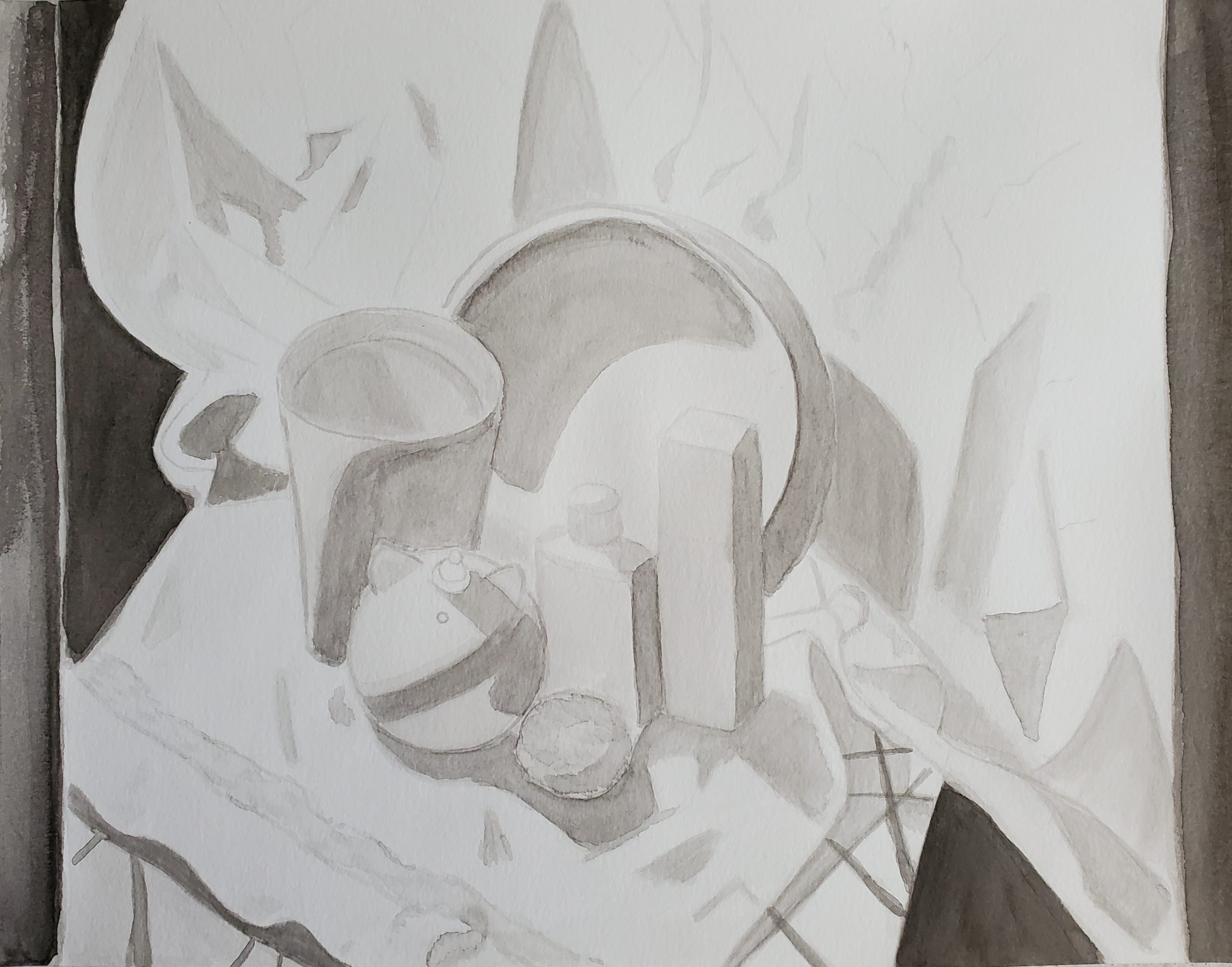 This artwork was made for a project in class, in which we were asked to use only white objects or materials. It was a challenge to create all of the shadowing to show the difference between objects. The focus was on perspective and contrast.
