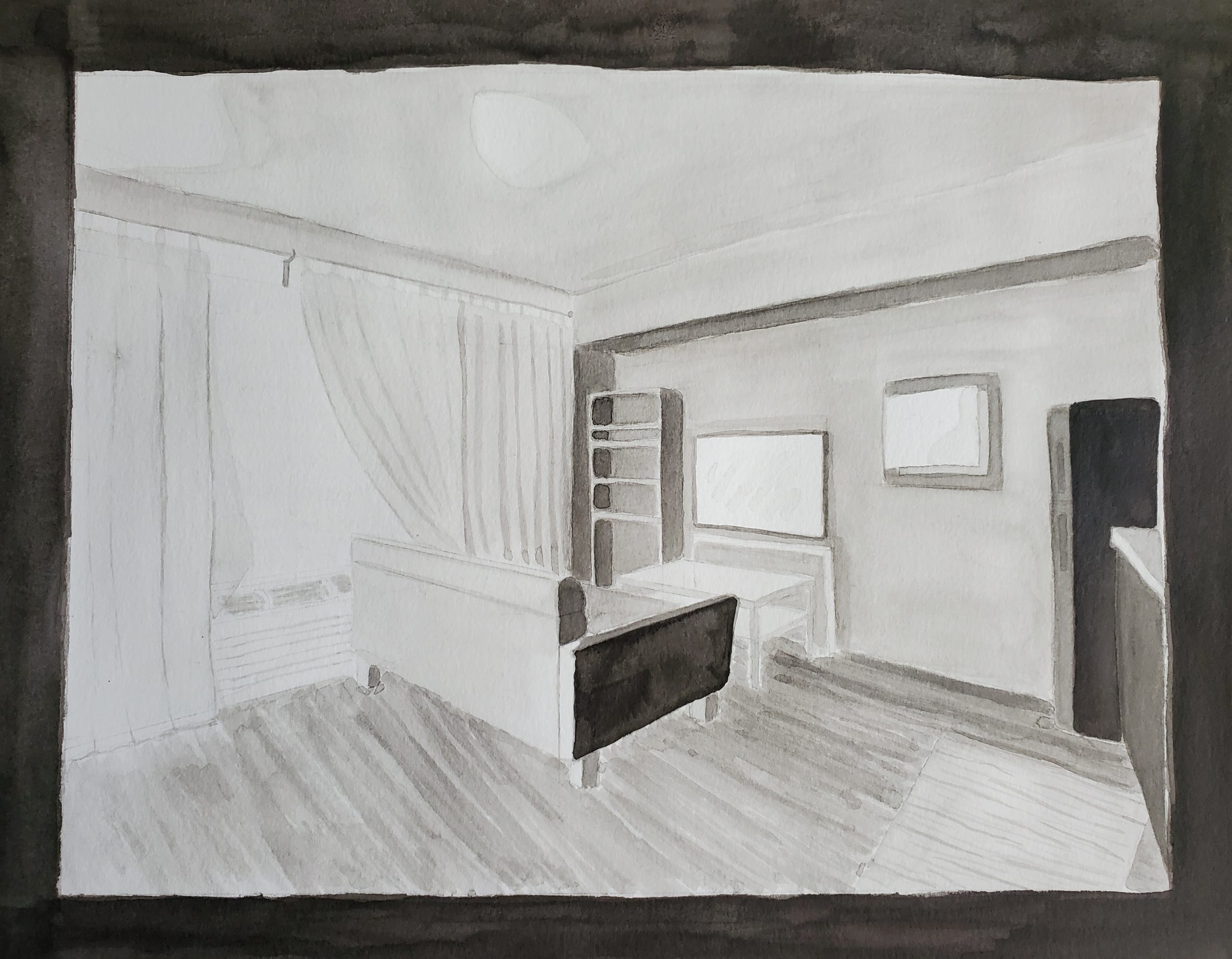 This artwork was a class project in which we were challenged to paint a room or area that showed perspective as well as value range. Some of the components were much darker or lighter than others.