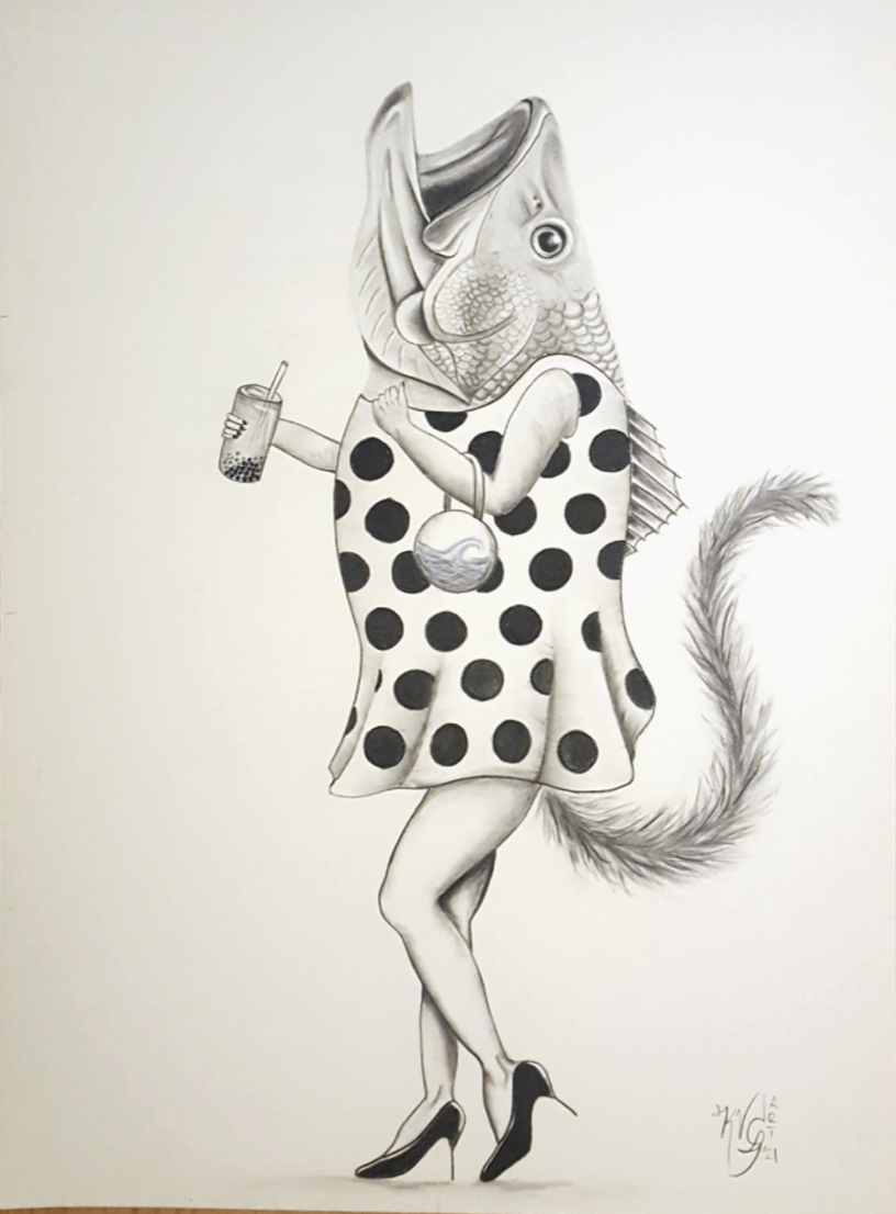 This drawing was one class project to create our own Chimera, a creature made up of at least three different animals. My focus was to create different textures using value shading with charcoal. I wanted to create an original, humorous and uncommon version of a Chimera. This is Sandy, she enjoys long walks on the beach, pina colodas, and getting caught in the rain.