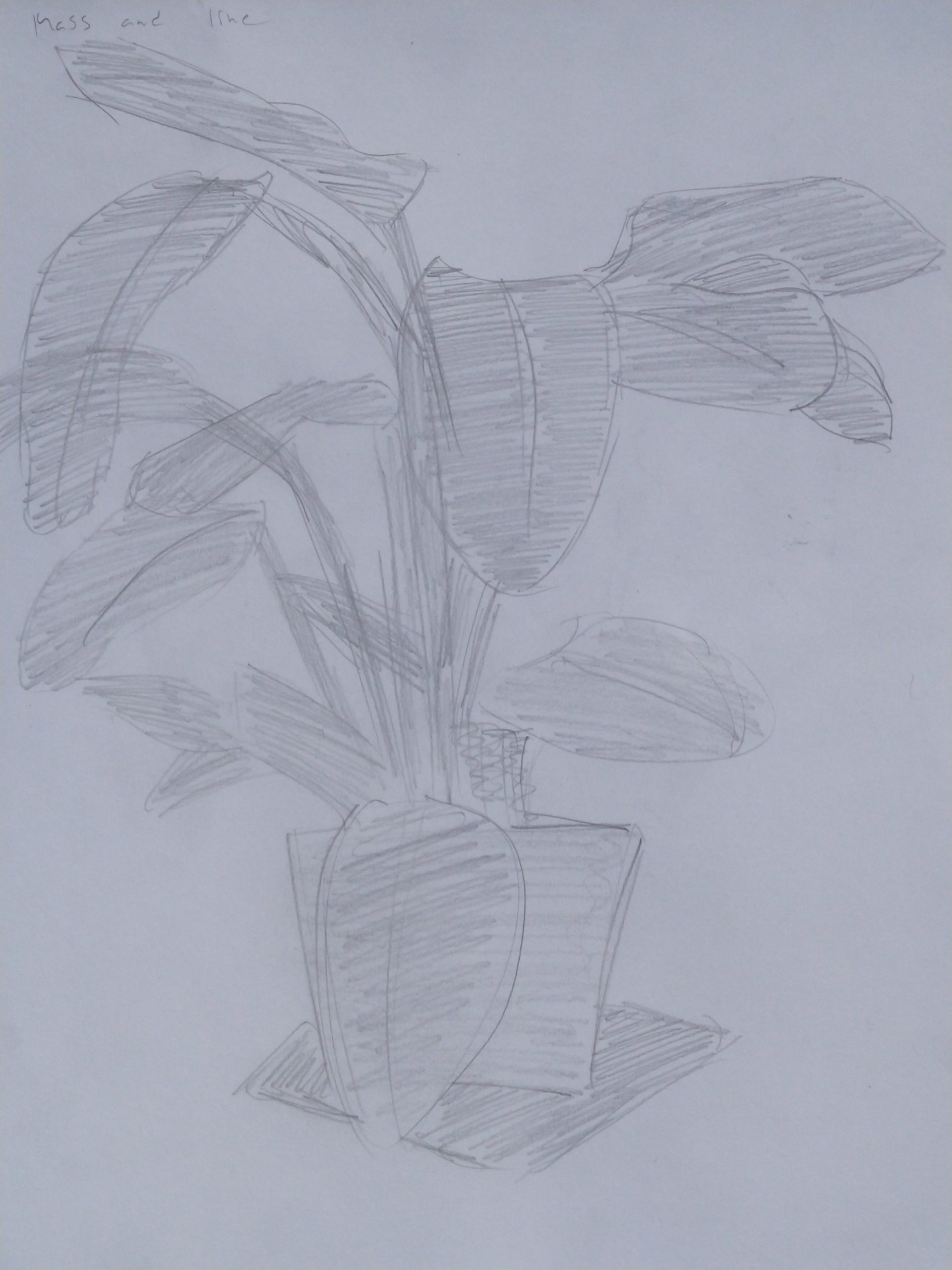 This drawing is one of five gesture drawings we were assigned. We were instructed to quickly sketch an object using different gesture techniques. I used a No. 2 pencil on drawing paper to sketch a houseplant.