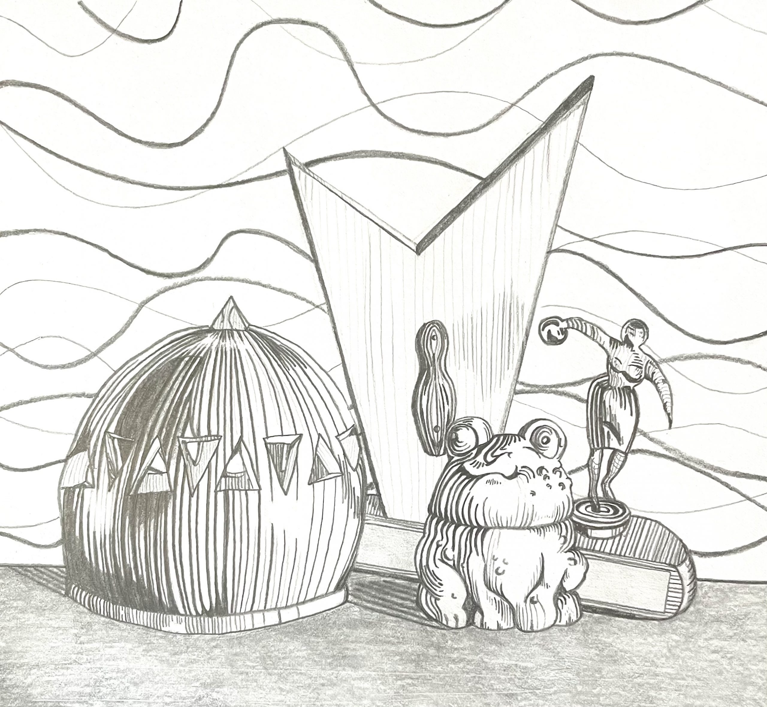 Emma Petersen, "Bowling Trophy," 2021, graphite on paper, 8" x 8.5"