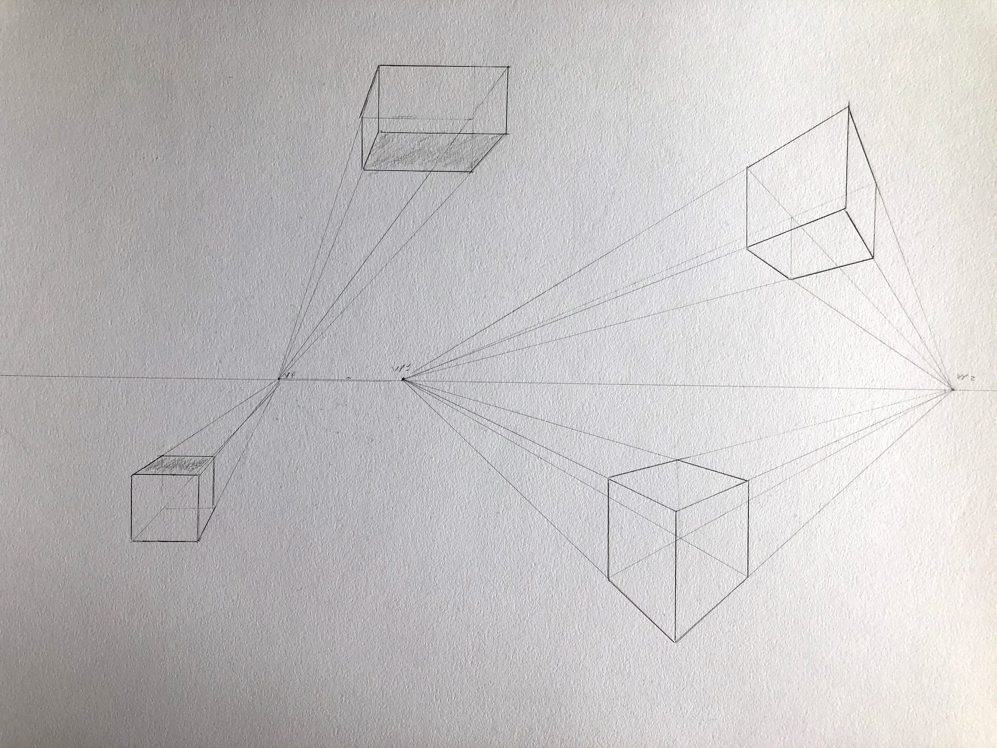 Study of drawing cubical shapes in two point perspective.
