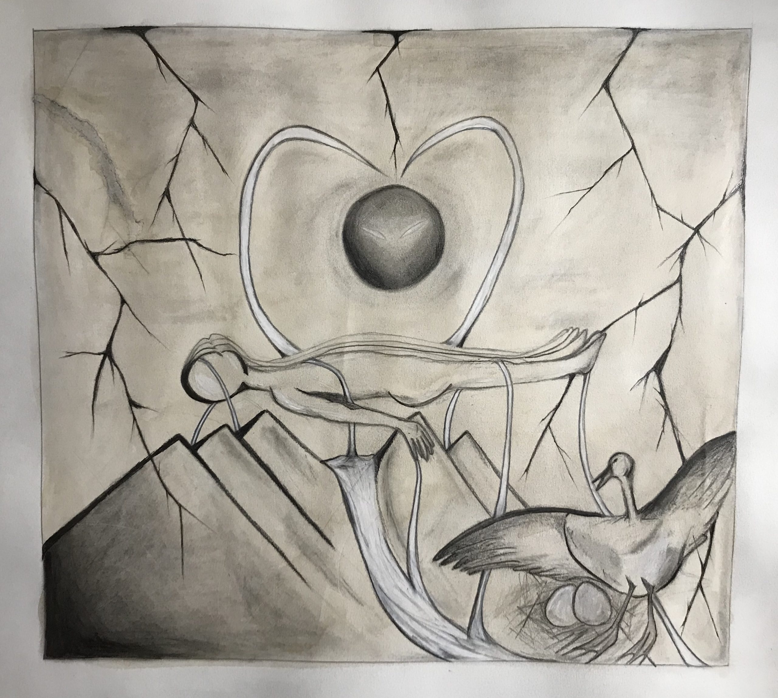 A depiction of self slowly evolving through time. Protector of spirit and essence lingering above watching and maintaining. Every ounce of myself pours into my environment.
