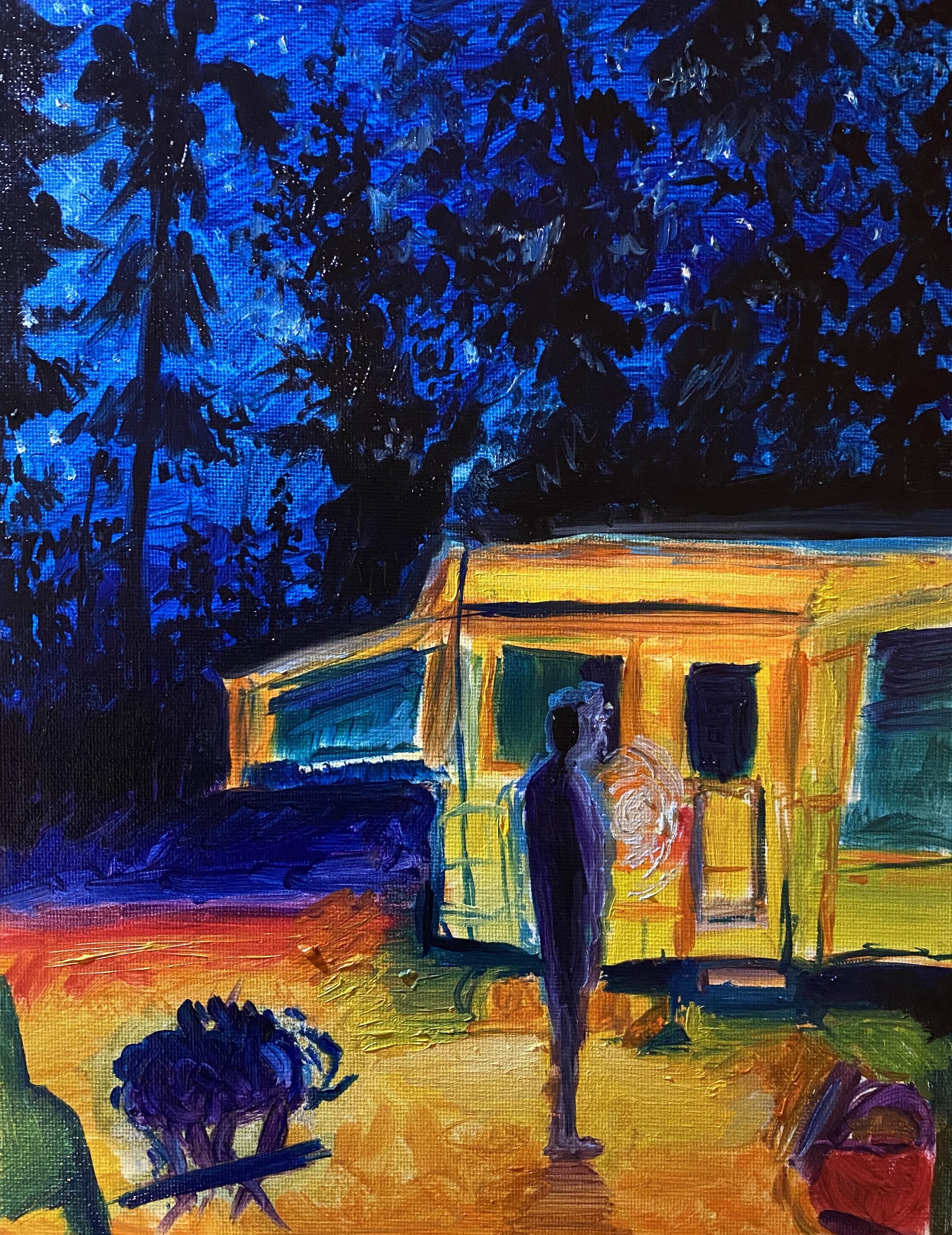 This painting focused on complementary colors and space. It was a “Quarantine Diary“ project. I tried to capture a moment over the summer while camping with my family.