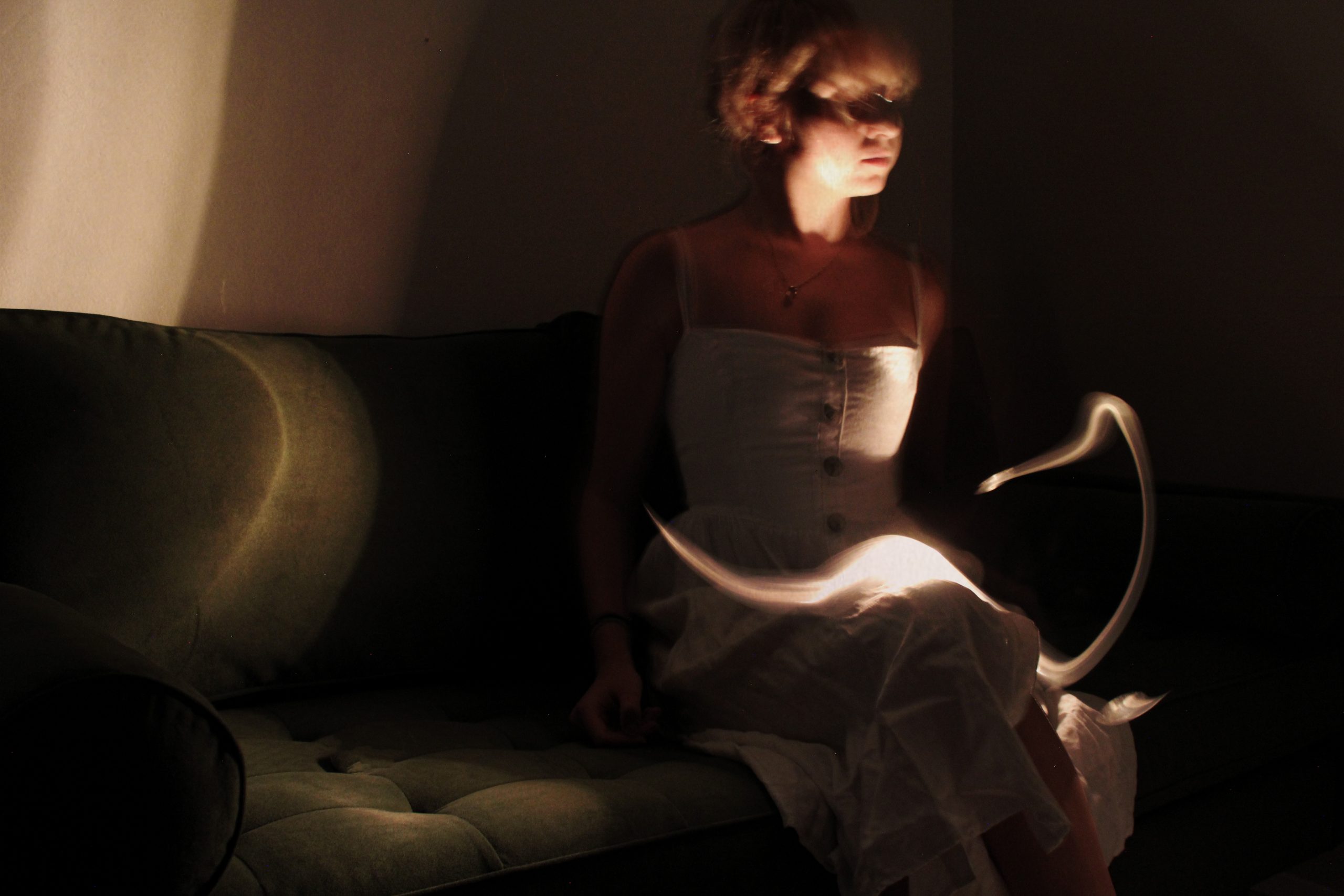 This photograph was from a class project, which we were asked to work with light and long exposures. With a self-timer and a tripod, I was able to capture the movement of a light source. I wanted the viewer to be uncertain about what they are viewing to create mystery.