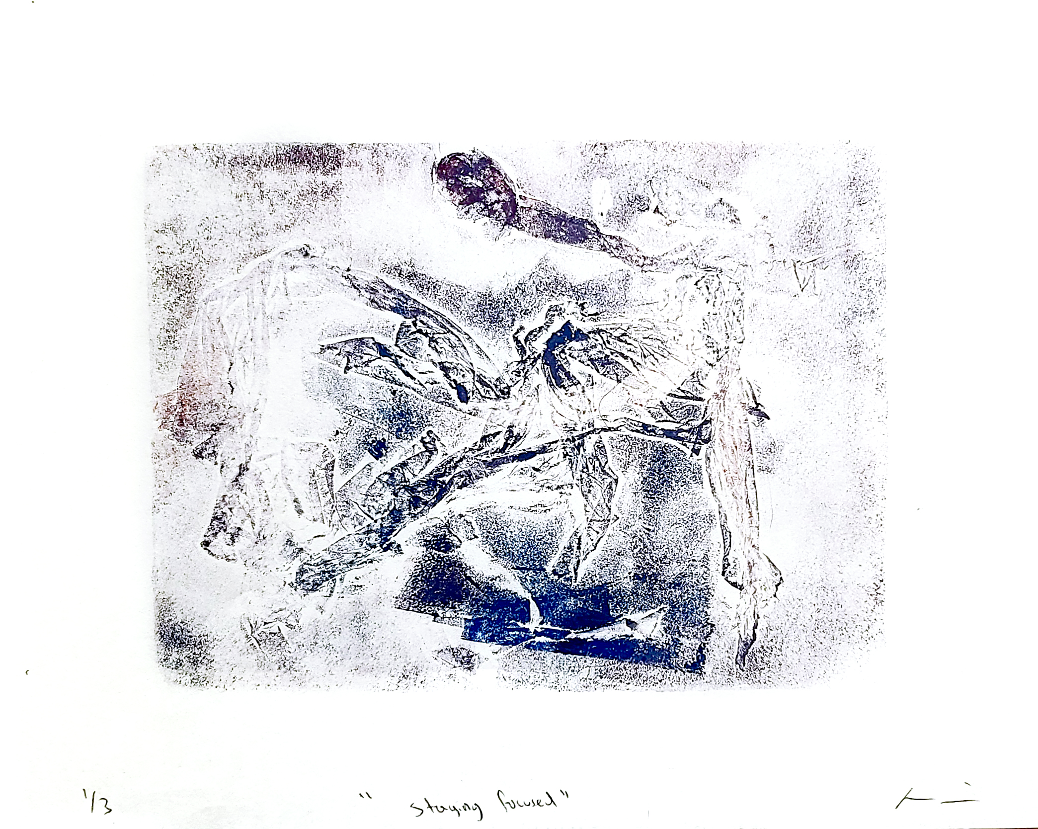 This drawing is one in a series of three prints where I explore and cope with self-doubt and anxiety during the quick burnishing process.