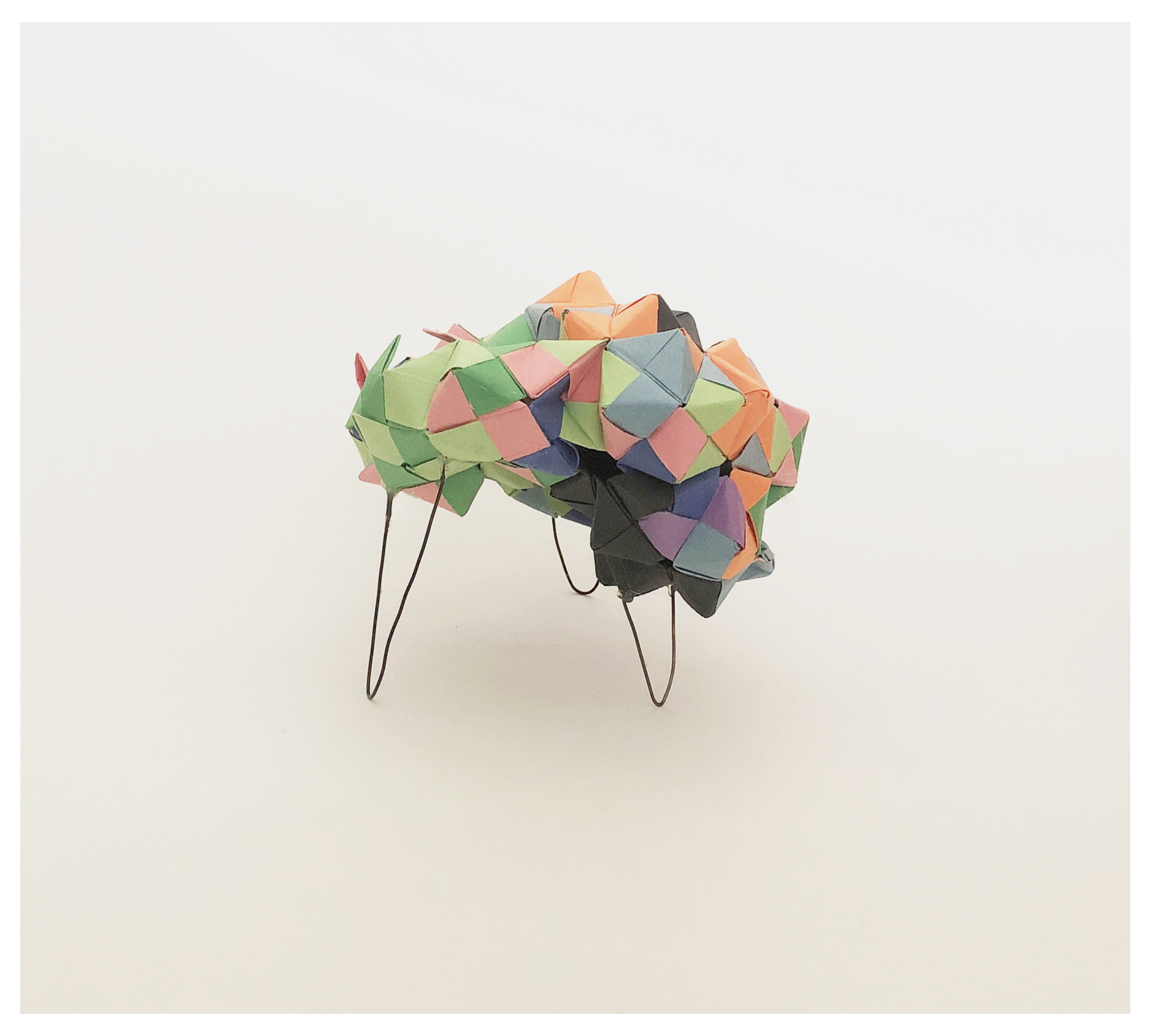 “The Time We Live” is a bug-like sculpture, which was made of tiny modular origami pieces. It is a metaphor of being afraid of fading memories, like there is a giant bug that nibbles young leaves.