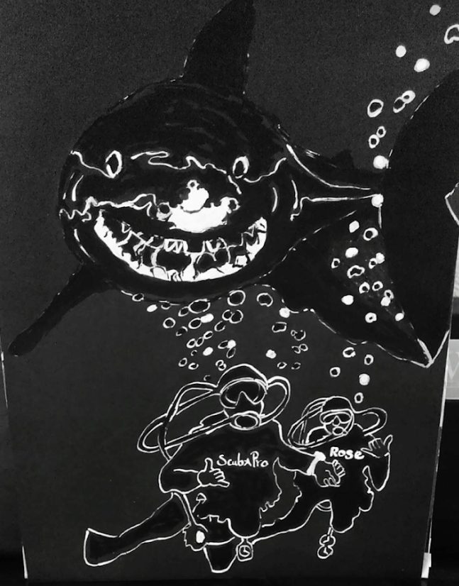 This painting took aver 15 hours. I drew this for my naturopath. She and her boyfriend love scuba diving.