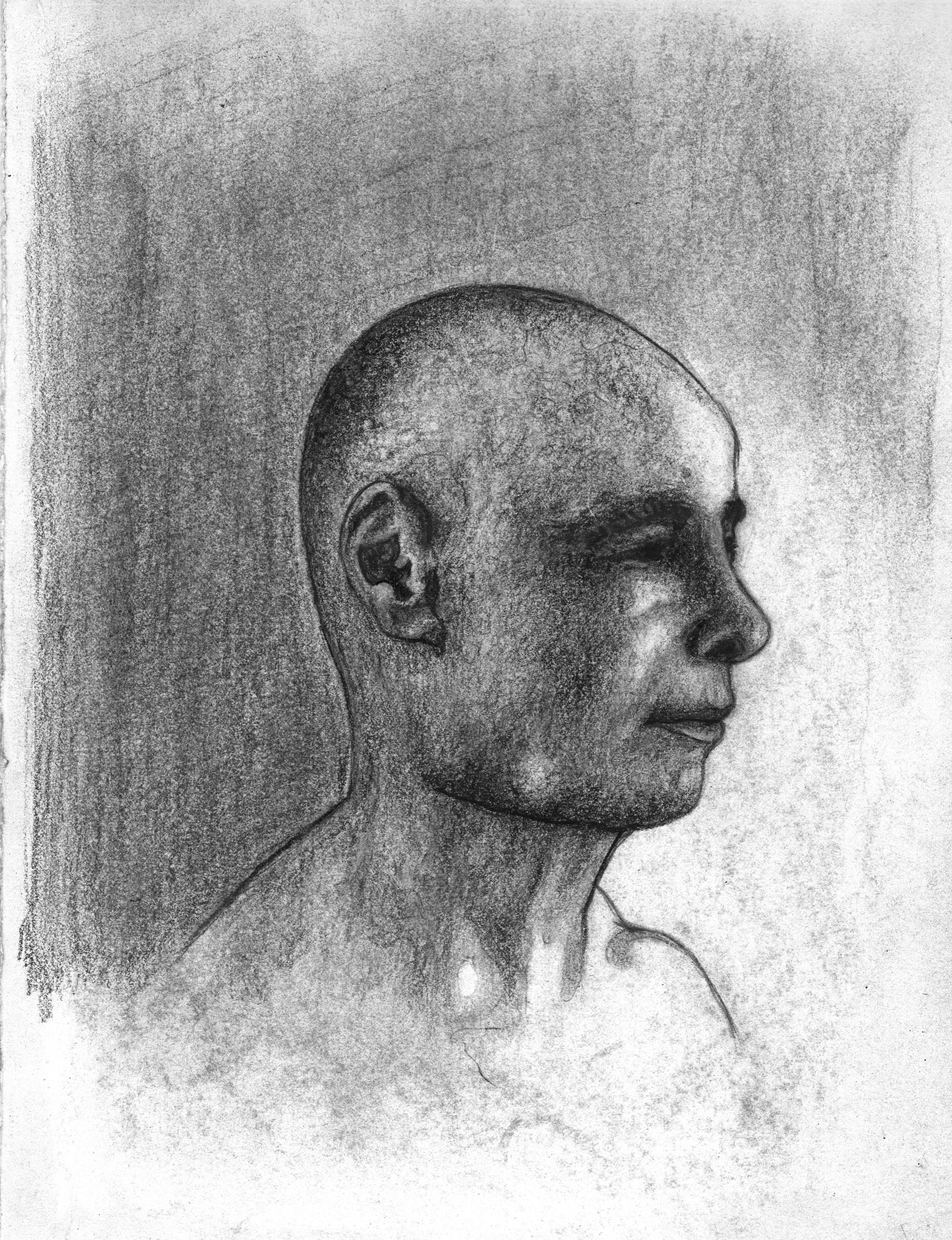 This charcoal drawing was assigned as an exercise in light and dark values using the technique of reduction. The drawing relies on shadow to illustrate and convey the model's "inner personality."